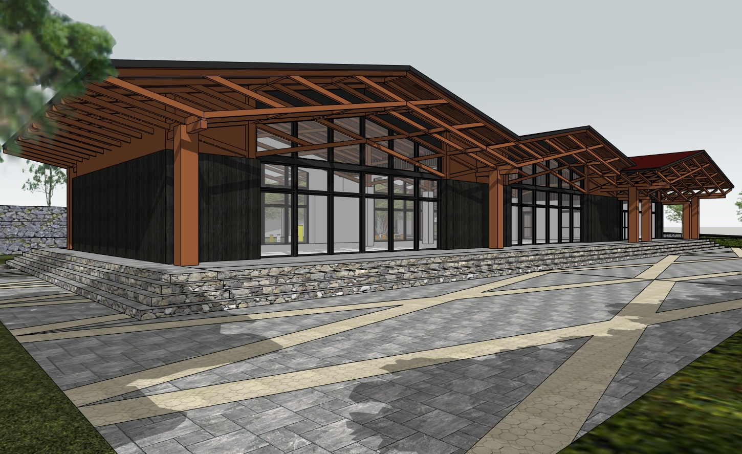 generate a highly photorealistic rendering of a luxury safari resort tent in a tropical setting important preserve the architecture exactly as designed no changes to form proportions structure materials or spatial layout do not reinterpret or redesign any architectural elements focus on achieving true to life photorealism with accurate material textures natural imperfections and refined detailing appropriate for a high end glamping resort aesthetic lighting midday tropical sunlight with strong clean natural illumination ensure realistic light behavior with soft but defined shadows proper contrast and balanced exposure not overblown highlights or overly dark shadows sky clear blue sky with a few soft natural clouds landscape setting surround the tent with lush tropical vegetation palm trees broadleaf plants dense greenery landscaping should feel rich and immersive but not overpower or obscure the architecture maintain a curated luxury resort feel not wild jungle chaos atmosphere warm inviting premium resort ambiance slight air clarity with subtle humidity softness typical of tropical climates but overall crisp visibility camera composition eye level or slightly elevated perspective natural lens no distortion realistic depth of field well balanced composition highlighting the tent as the focal point overall goal a believable high end tropical safari resort scene that looks like a real photograph taken on a bright beautiful day elegant calm and luxurious