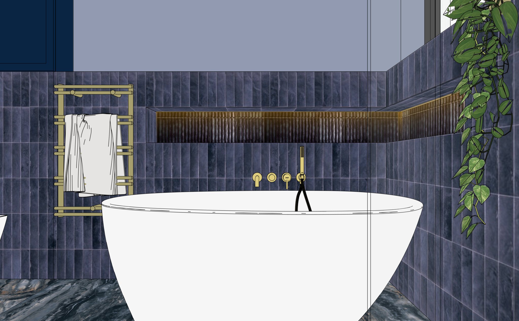 nie zmieniaj geometrii perspektywy tekstur mebli kolor w nie dodawaj adnych element w dekoracyjnych ani mebli uj cie jest jakby z pod kabiny prysznicowej we wn kach nad wann jest pod wietlenie led szafki s lakierowane matowym lakierem wanna s bia e matowe kafelki s polerowane w azience jest rednio ciemno klimatycznie jak w spa p ytki pod ogowe s matowe popraw wizualizacj eby by a hiperrealistyczna