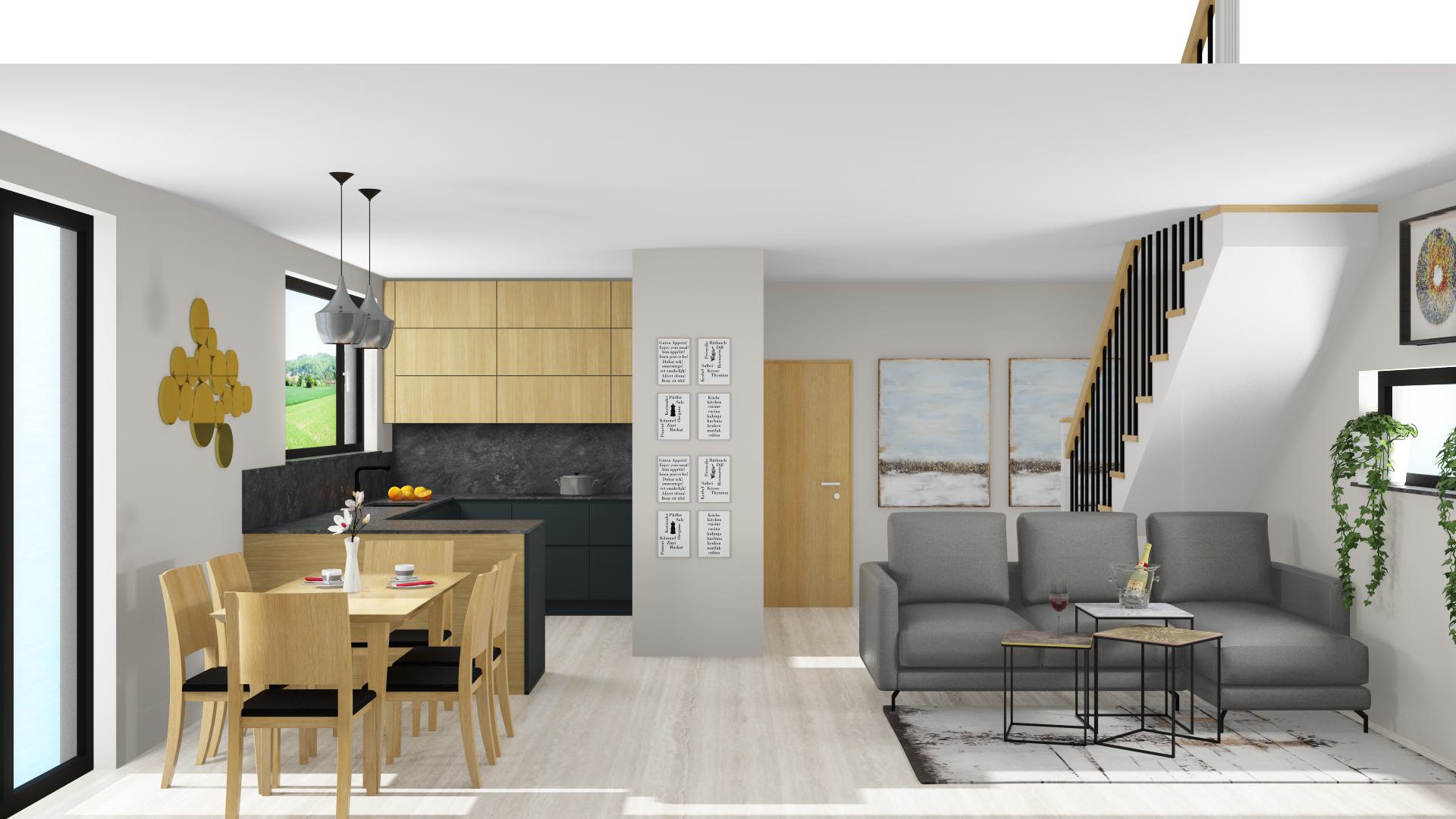 keep the colors keep the layout of the cabinets add a landscape outside the windows