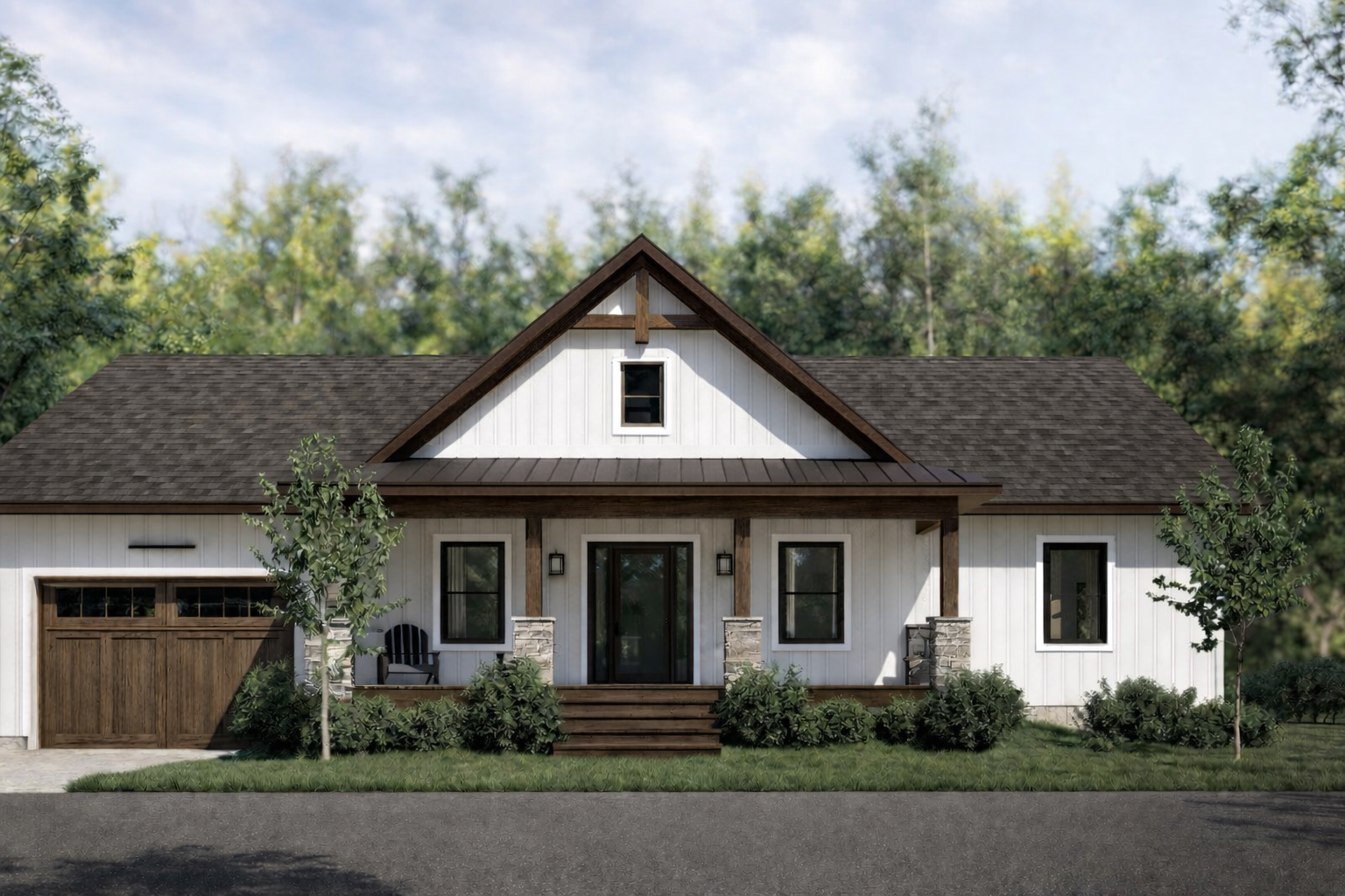 same picture but the color of the frames of openings charcoal and replace the wooden porch for a concrete one