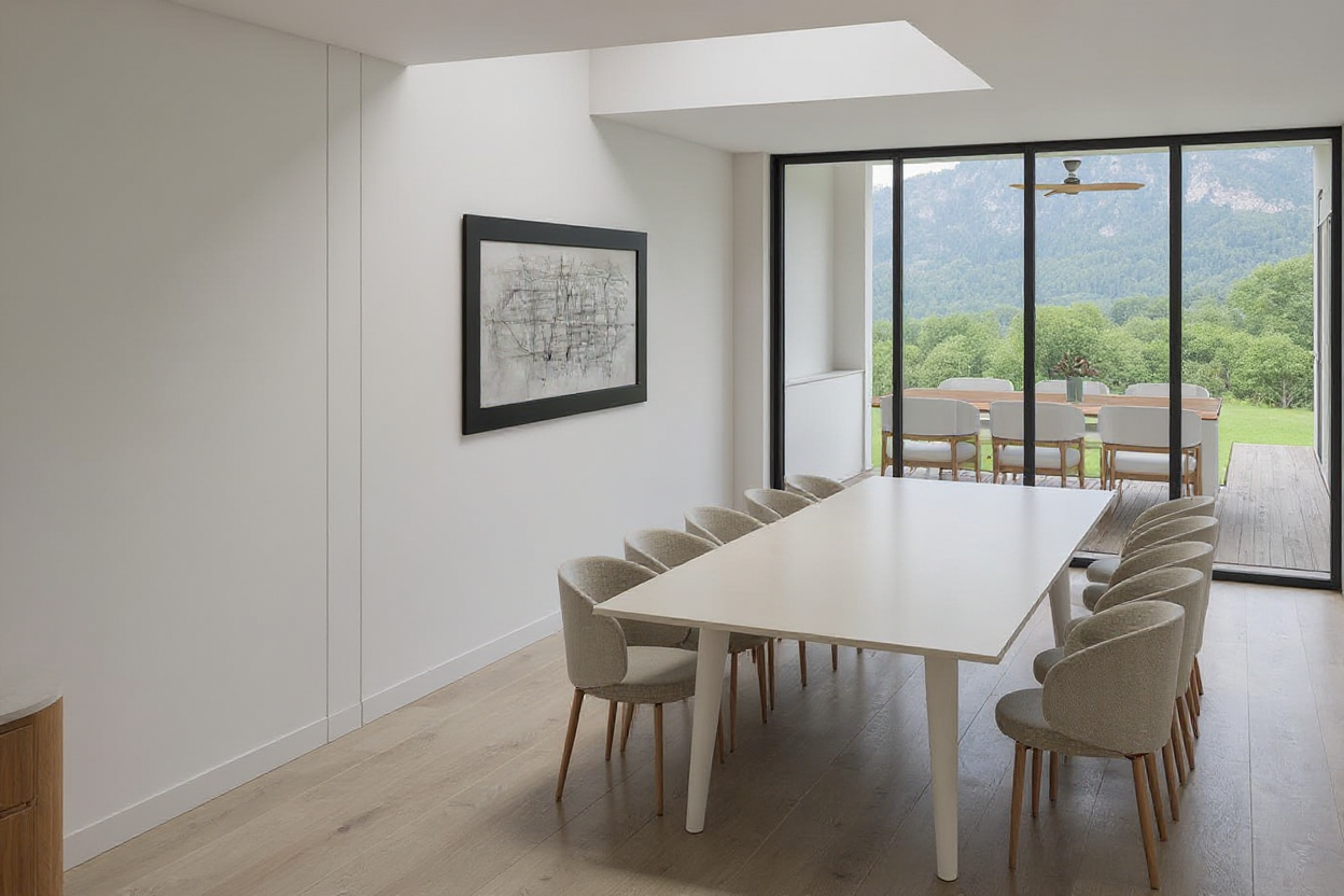 no line at the wall plain ceiling have a void the void follow the picture size the outside og the dliding door is outdoor dont need tree outside just show normal view like the picture i gave outside remain same as picure i gave add curtain at the sliding door wall is plain no line