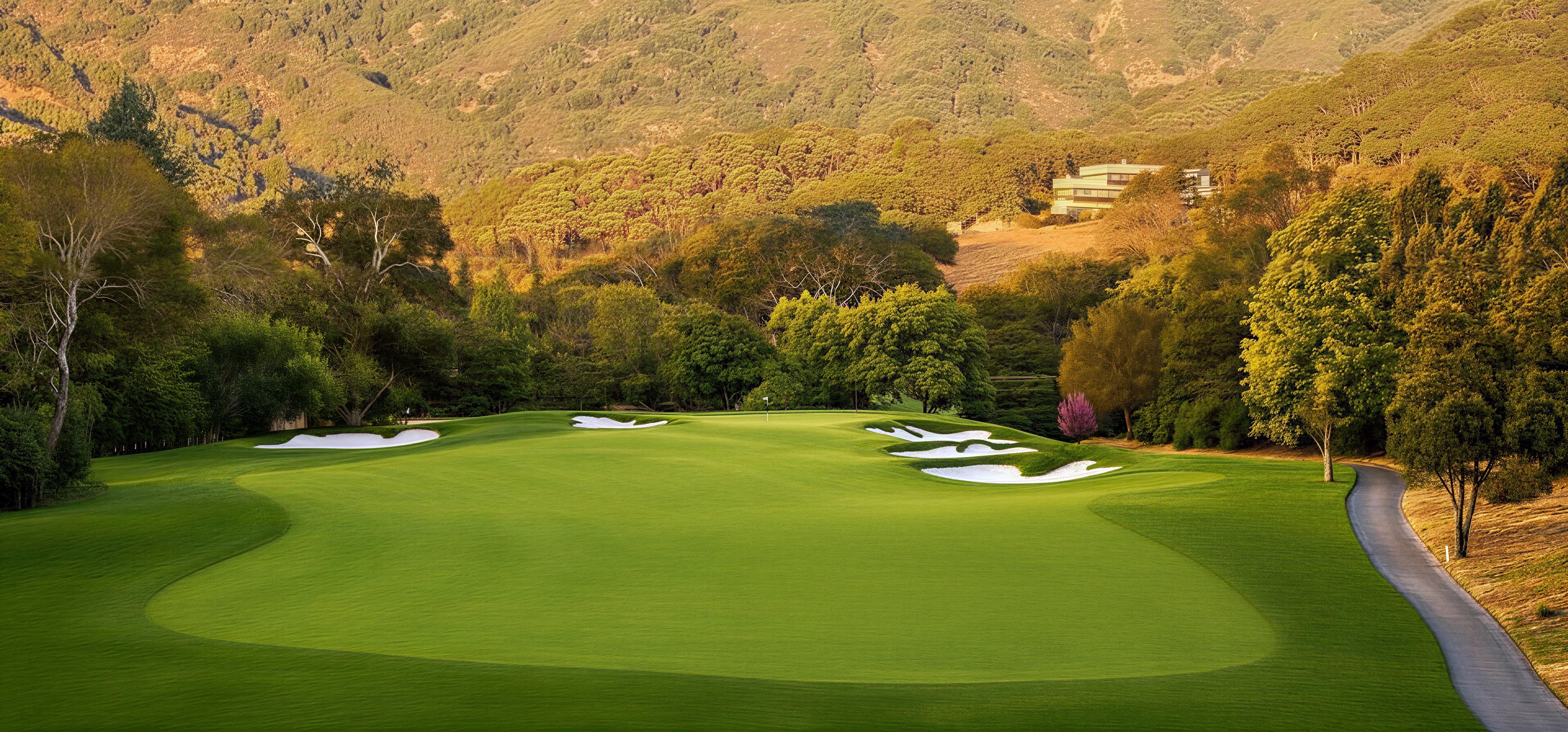 using the attached image exactly as it is perform a seamless blending retouching pass only do not add remove move redesign reinterpret or enhance any golf landscape or background element all objects vegetation bunker shapes fairway green geometry flagsticks paths water fog sky and contours must remain identical to the input image the only allowed operation blend stitched patch boundaries so they match surrounding scene match color lighting shadows turf texture sharpness and resolution across joins smooth visible seams at edges of previously inserted items nothing else prohibitions no new elements of any kind no deletions no geometry changes no creative reinterpretation output one cohesive photorealistic photograph with zero evidence of compositing