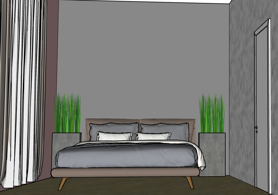 international style interior shot bedroom curtain plants white door add ceiling lamp above bed architecture