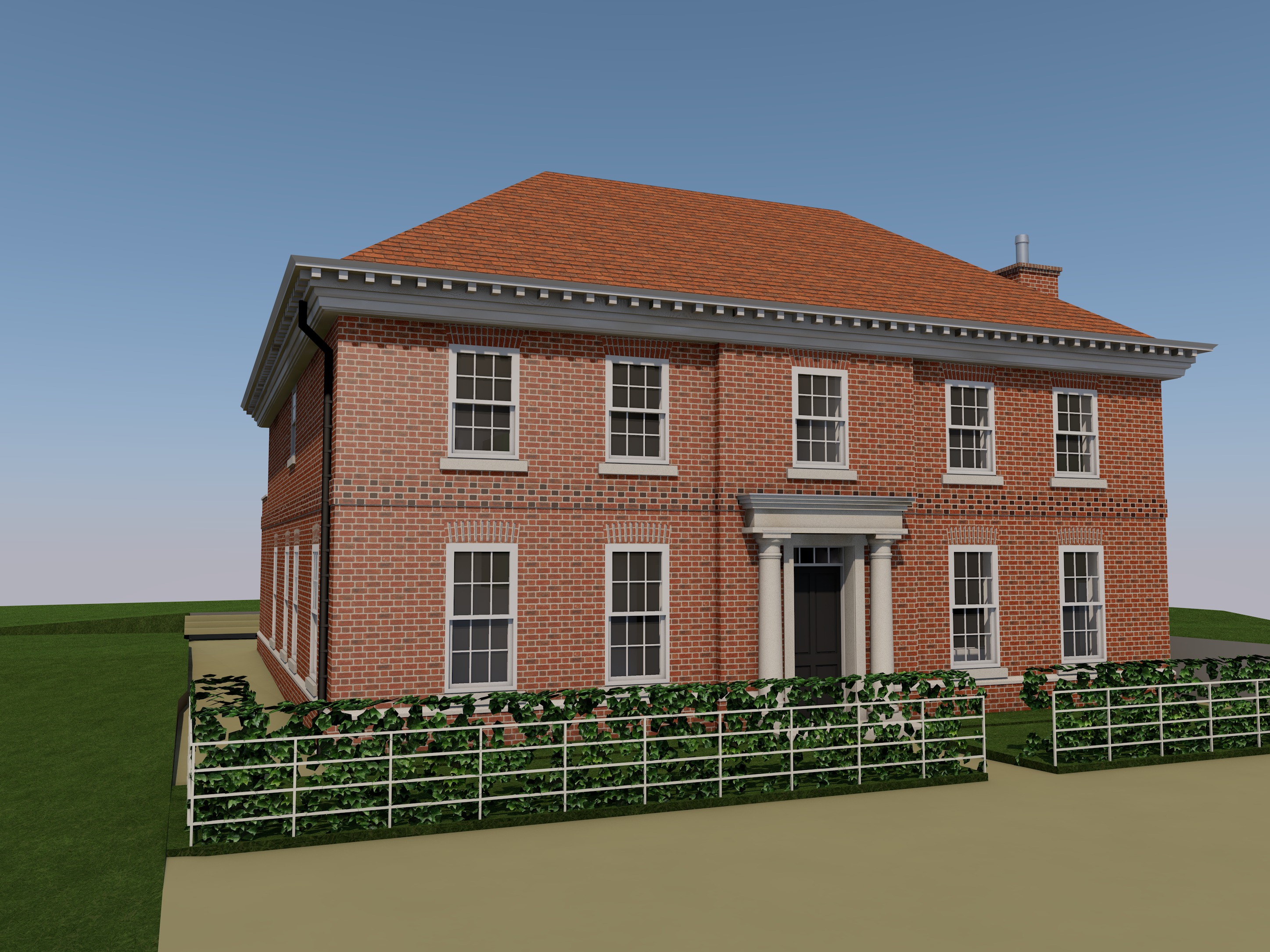 create a hyper realistic visual of this house design add planting to the front make the driveway a cream resin bound finish and add trees and planting in the background it needs to look classy and i like some planting on the house