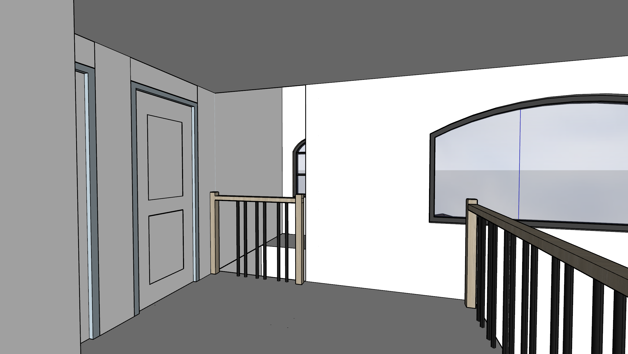 hard wood flooring interior white walls recessed lights on ceiling window frames black