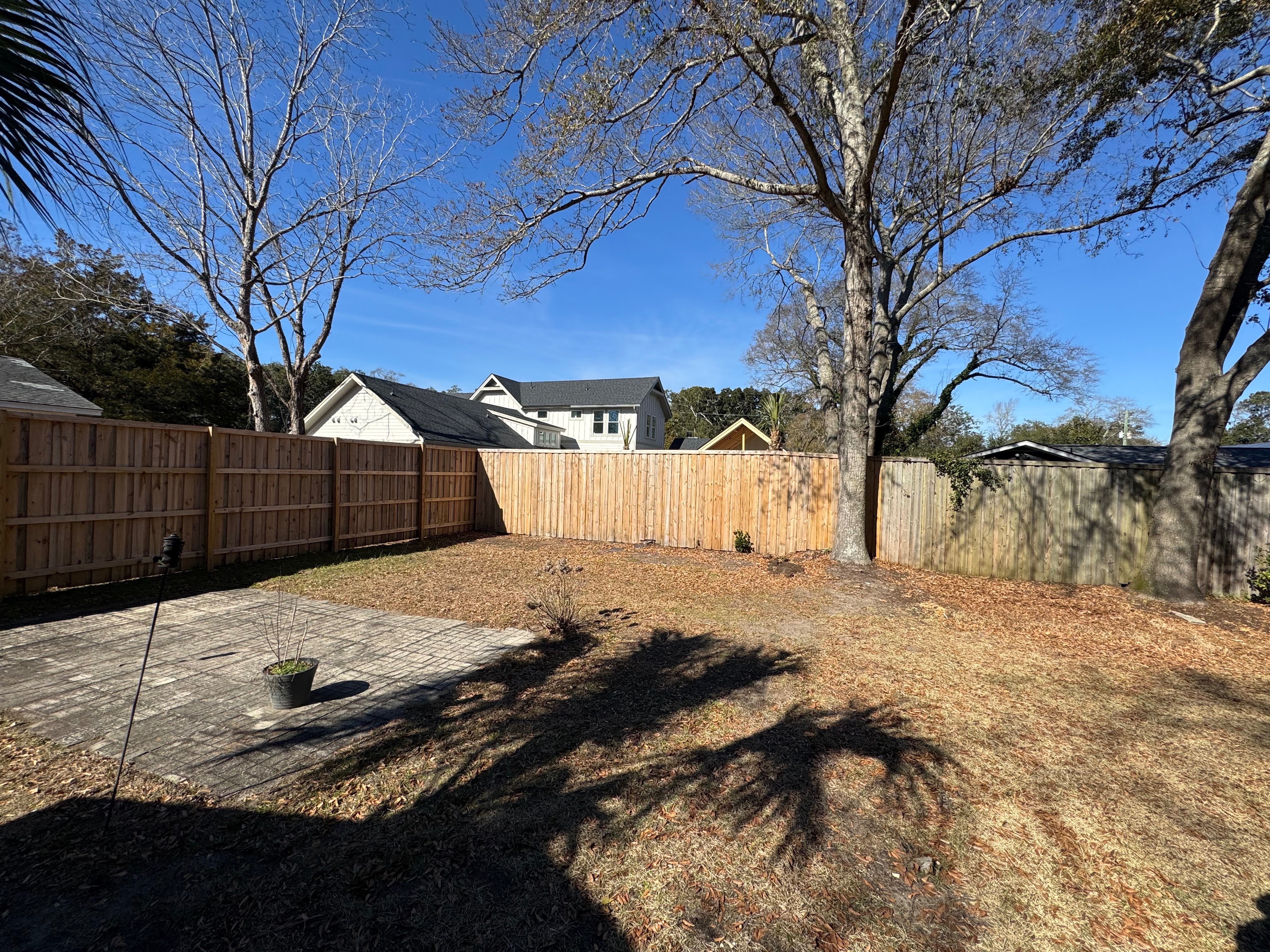 put in evergreen hedges on the perimeter with wood burning firepit in the corner with green grass around architecture