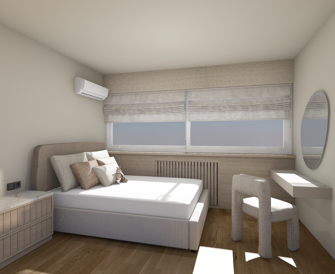 the bed is dressed with perfectly ironed impeccably arranged bedding and pillows styled like a five star hotel the sheets and duvet are crisp smooth and completely wrinkle free back from the mirror on the right has led light