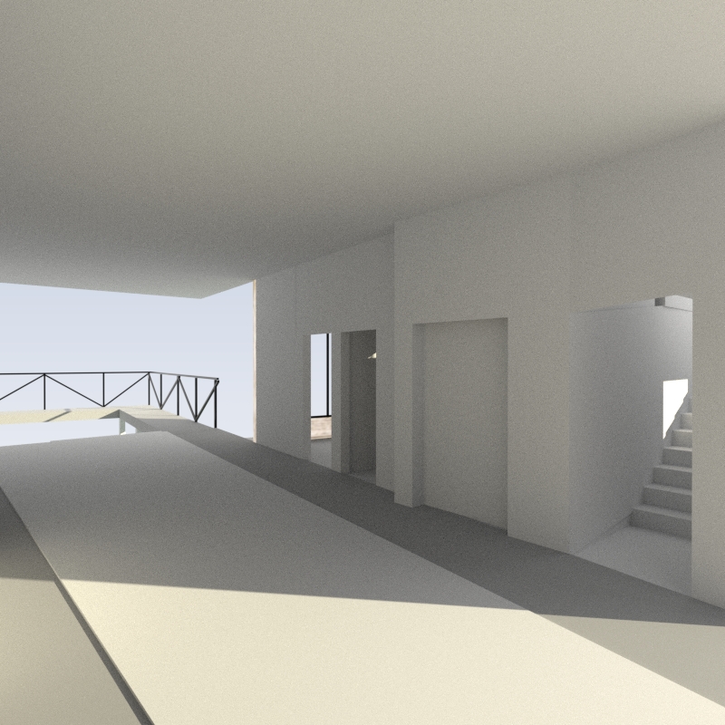 add a stone path in the middle of the grey have the end looking out to a mountain cliff view