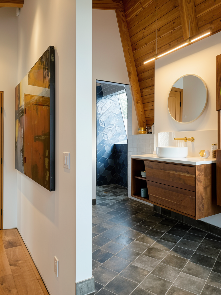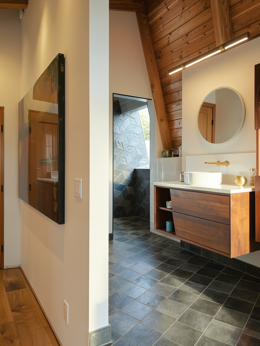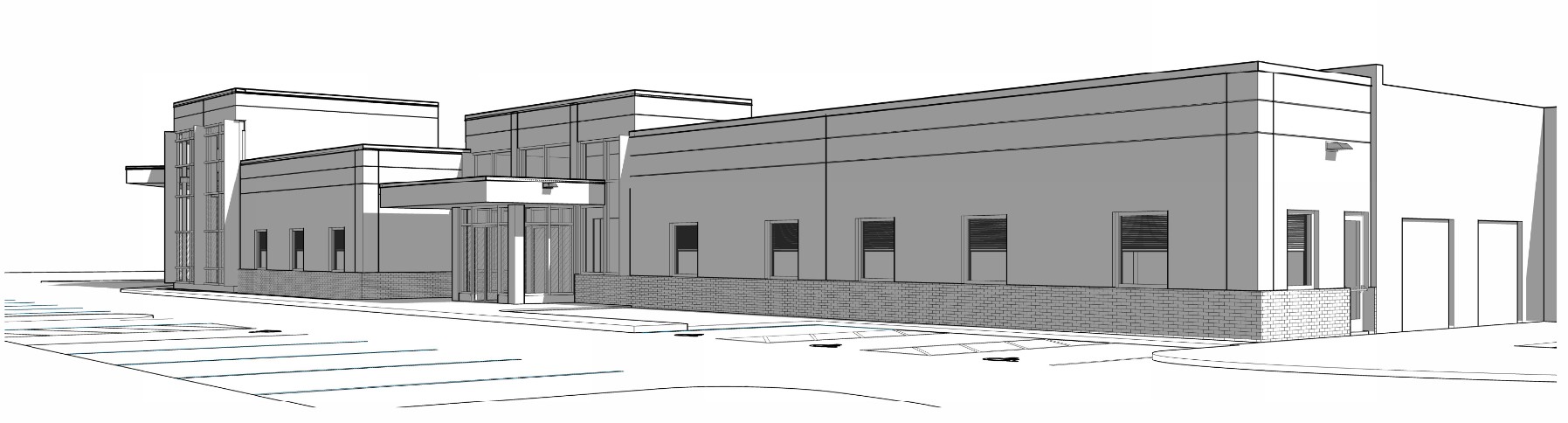 create a realistic architectural rendering of a modern building complex the buildings should feature smooth beige walls large glass windows reflecting the sky and sleek gray frames surround the complex with lush vibrant green landscaping including manicured bushes and small trees the parking lot should be a smooth dark asphalt with clear white lines the sky above is bright and blue with wispy white clouds enhancing the tranquil and inviting atmosphere add some contemporary outdoor furniture near the entrance for a welcoming touch use natural lighting to highlight the architectural details and create a sense of warmth and openness