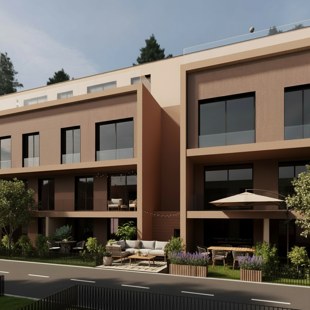 use the provided image strictly as the base render maintain the exact composition camera angle lighting materials textures and all objects unchanged modify only the kitchen cabinetry color change the current terracotta color of all kitchen cabinets including tall units and lower cabinets to a soft chalk color k dov barva the chalk color should be a muted matte off white with a slightly warm undertone not pure white not glossy important constraints preserve all original materials surface roughness and texture details only adjust color keep lighting shadows reflections and global illumination exactly the same do not modify wood elements countertops backsplash furniture walls floor or any other objects do not add or remove anything ensure realistic color integration with existing lighting conditions