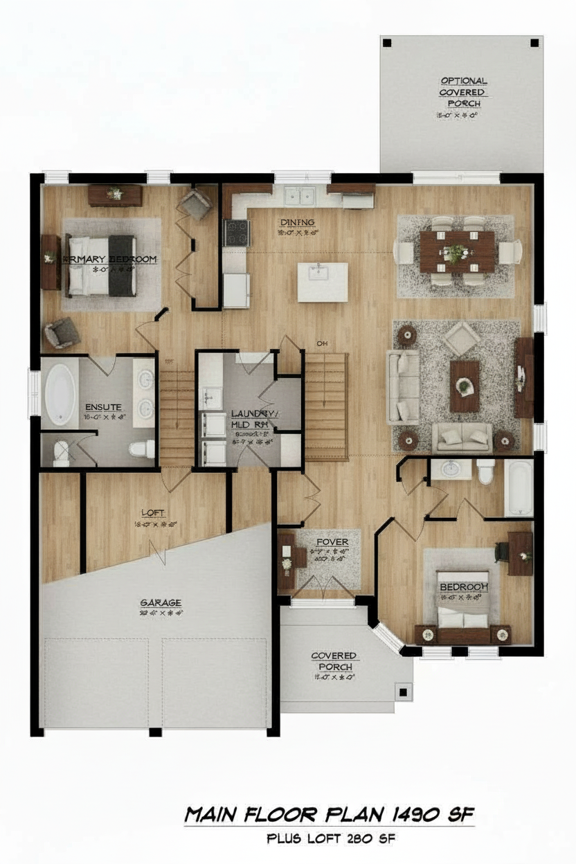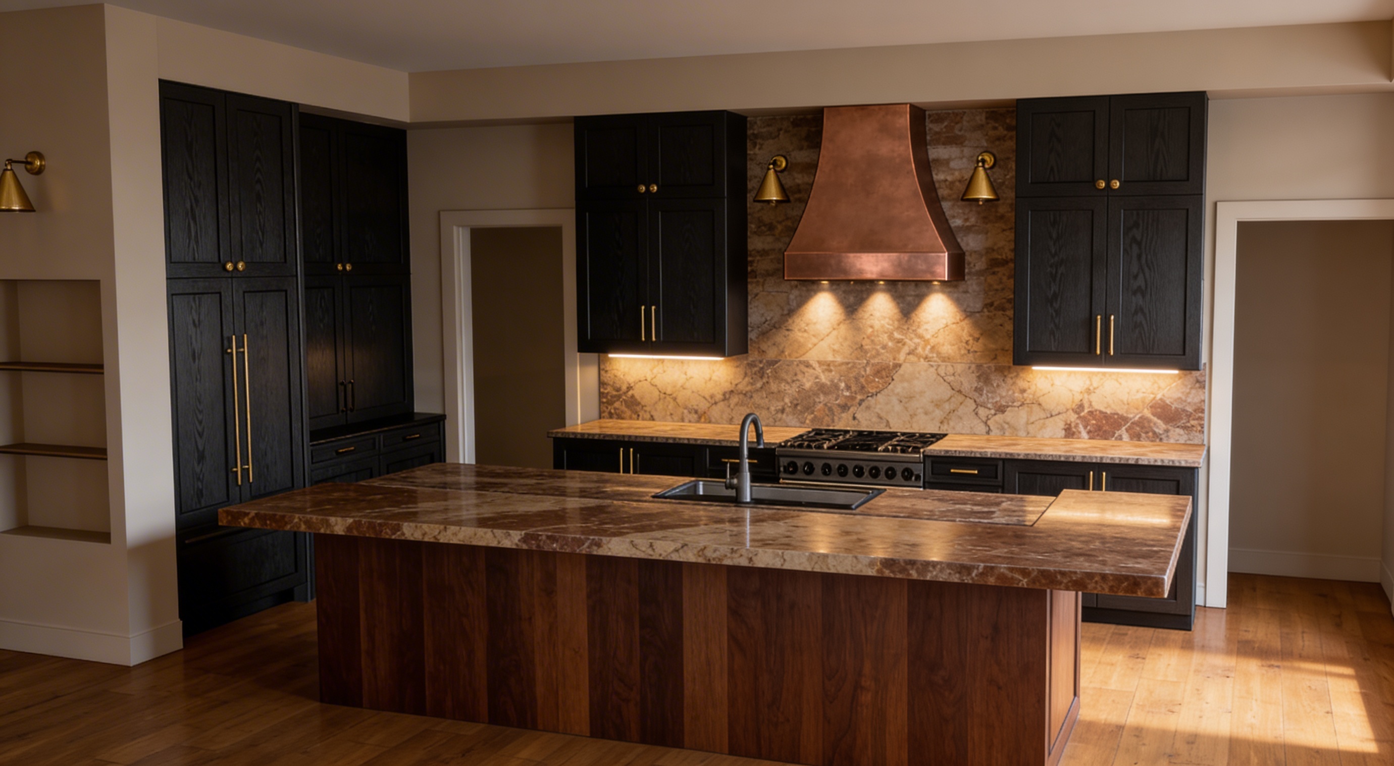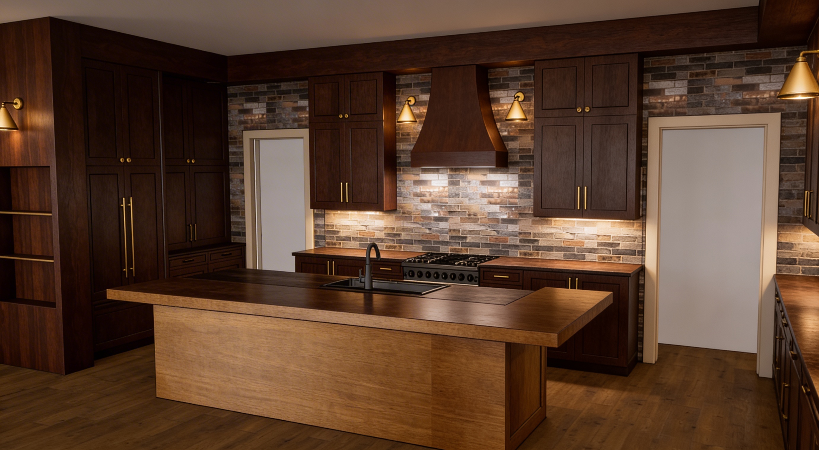 strictly preserve the original image and geometry exact same camera angle and framing no changes to architecture no modification to walls doors or openings keep all furniture exactly as is do not add or remove any objects no redesign no deformation preserve all original materials and colors no reinterpretation no new elements enhance only lighting and realism soft architectural photography style warm late afternoon ambient light soft diffuse shadows calm and balanced atmosphere subtle artificial ambient lighting only from the existing rattan pendant lights warm soft glow realistic light diffusion no new light fixtures natural materials with subtle imperfections slightly aged wood with light patina realistic rattan texture with fine weaving detail natural irregularities and softness gentle texture variation no overly perfect surfaces rural outdoor background with fields inspired by the alsatian sundgau landscape soft natural horizon coherent with interior lighting visible only through existing openings no new windows or exterior views keep all the existing ceiling in the same color of sketchup model 50mm lens shallow depth of field slight film grain soft contrast natural color grading