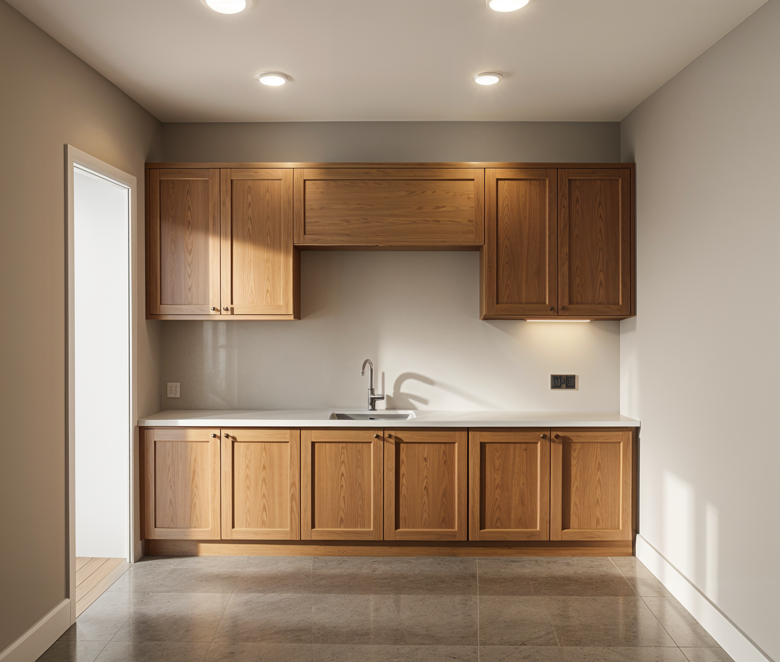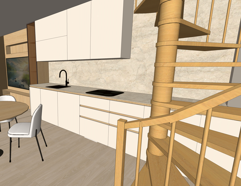 render a photorealistic interior visualization keep the materials and furniture layout exactly as shown in the image add little bit of minimalistic decorations