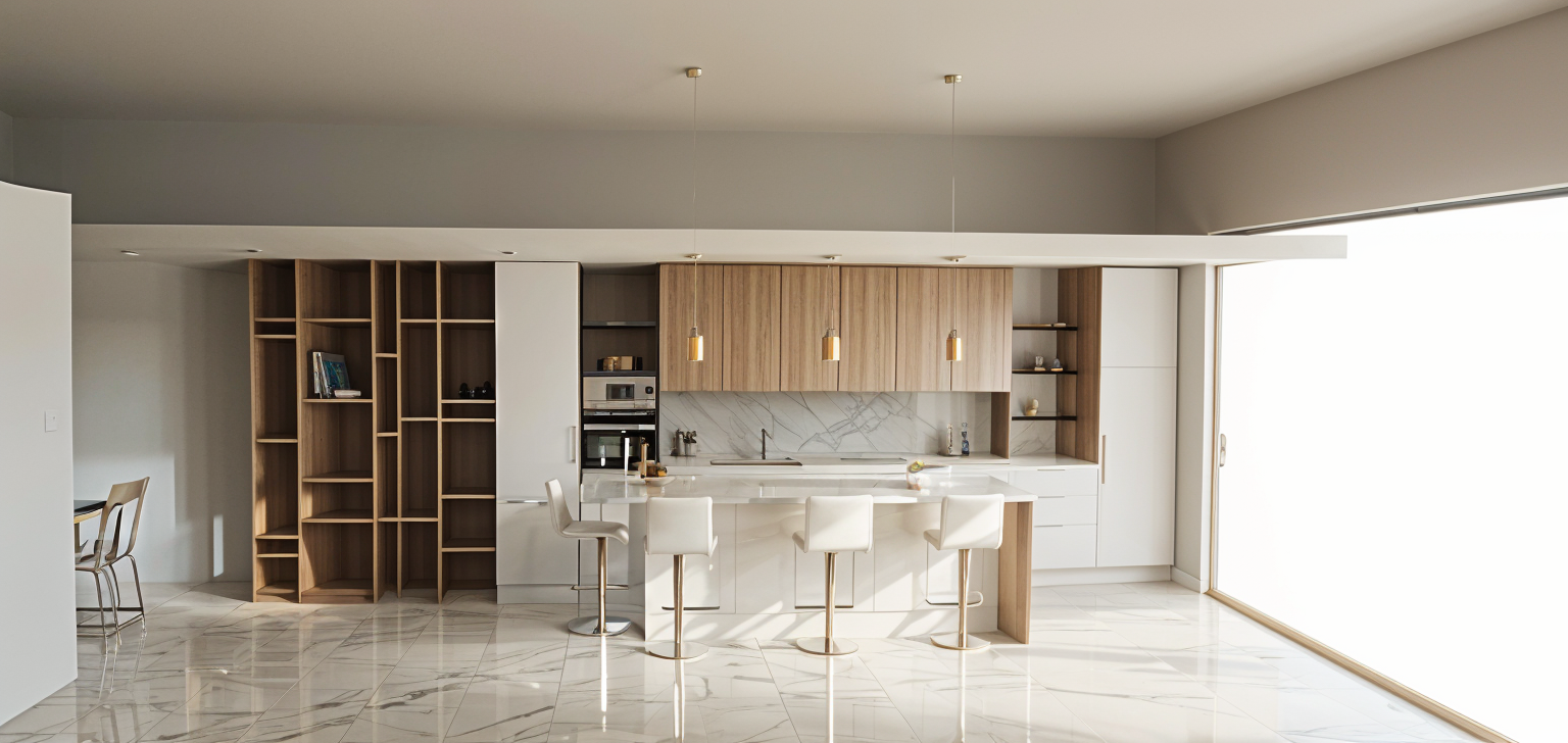 make a 3d top view of this picture warm light don t change the materials or composition let the left under room closed