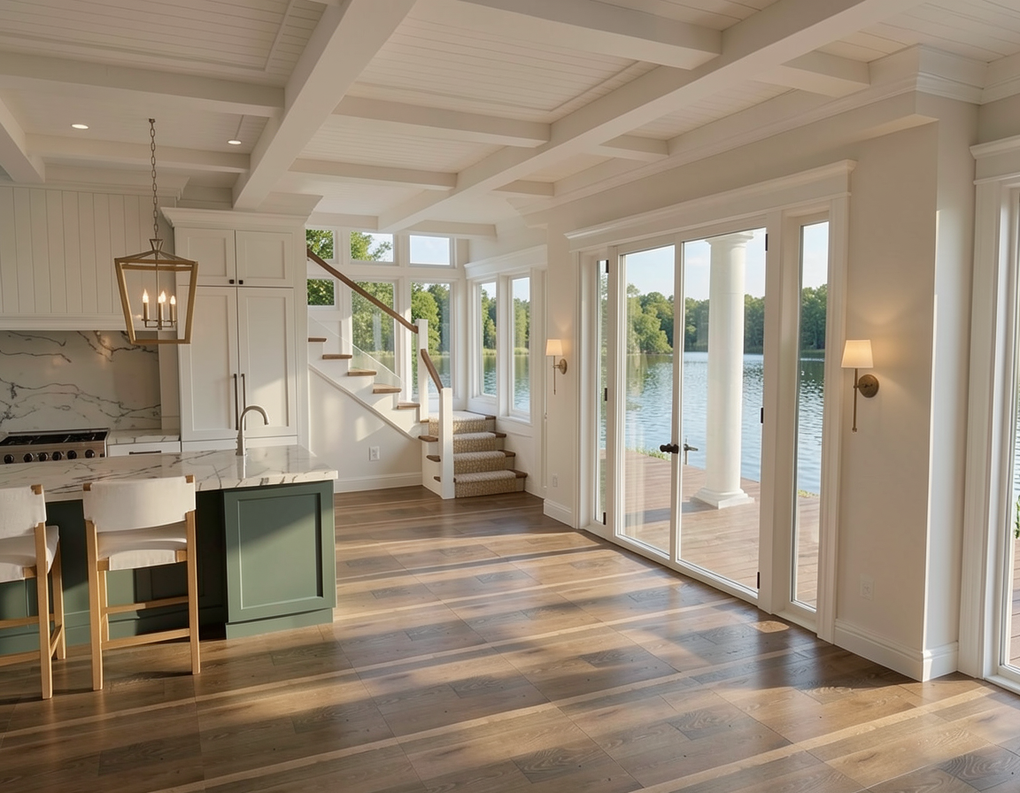 make it look classic hamptons palm beach traditional w lush greenery no ocean white clapboard and red concrete tile