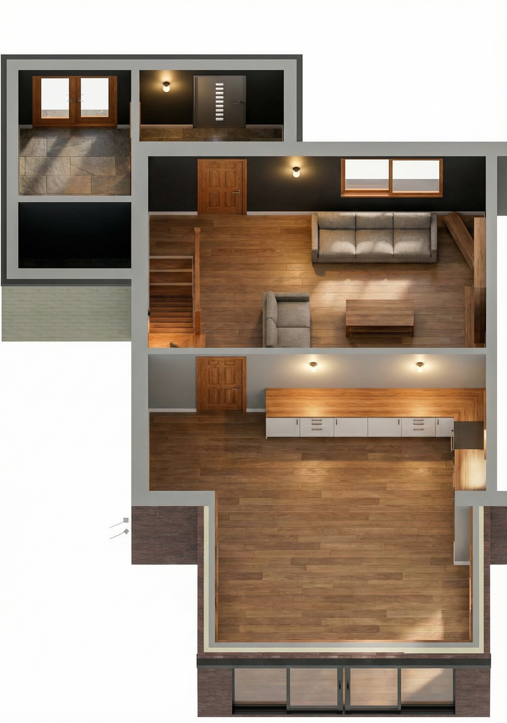 light your interior like a cloudy day transform your bathroom design photo into a hyperrealistic architectural visualization of a contemporary modern bathroom preserve the exact geometry layout proportions and materials of the original design lighting create an atmosphere of soft overcast daylight reminiscent of a cloudy rainy day without visible rain with diffused natural light maintain balanced contrast eliminating harsh shadows and highlights materials and textures enhance material realism micro details surface imperfections soft reflections precise roughness and physically accurate light response highlight textures light walnut wood grain light beige tiles metal and matte finishes high microcontrast and tangible depth rendering style ultra photorealistic architectural visualization cinematic quality natural color gradation neutral tones subtle highlights realistic global illumination physically based rendering high dynamic range premium interior photography camera and composition wide angle architectural lens natural perspective eye level view deep focus sharp details throughout the frame natural framing no distortion ambience calm elegant contemporary upscale residential atmosphere clean minimalist sophisticated and free from visual noise output 8k resolution ultra detailed noise free sharp edges professional quality architectural rendering white sockets no additional led lighting negative cues no raindrops lens flare fog haze blur cartoonishness stylization over sharpening artificial glare unrealistic reflections distortion clutter led lighting windows concrete led lighting in cabinets