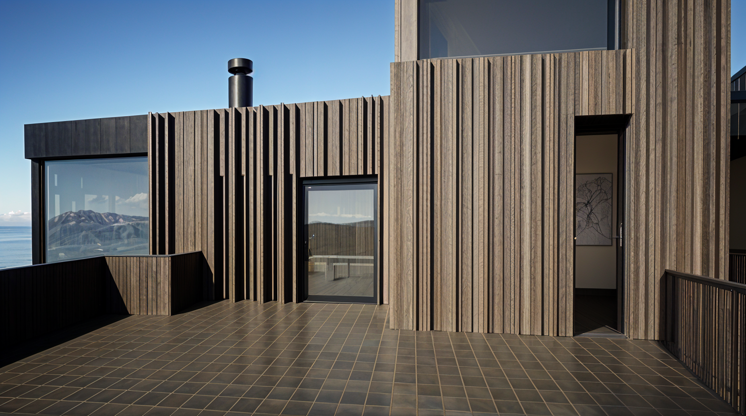 colours to remain accurate as per original given picture wood texture to be subtle niche internal and table surface in muted light warm earthy light brown laminate with subtle olive undertone matte finish top hung cabinet in solid colour light beige 2 casement door below window in solid colour light beige bed base in light beige microcement bed headboard in solid colour light beige ceiling in off white floor in muted light beige vinyl subtle grains ceiling fan in white 1 wall in deep ocean teal blue laminate muted and slightly greyed matte vu texture soft subtle grain non glossy finish other walls in off white blinds in white wall skirting in white