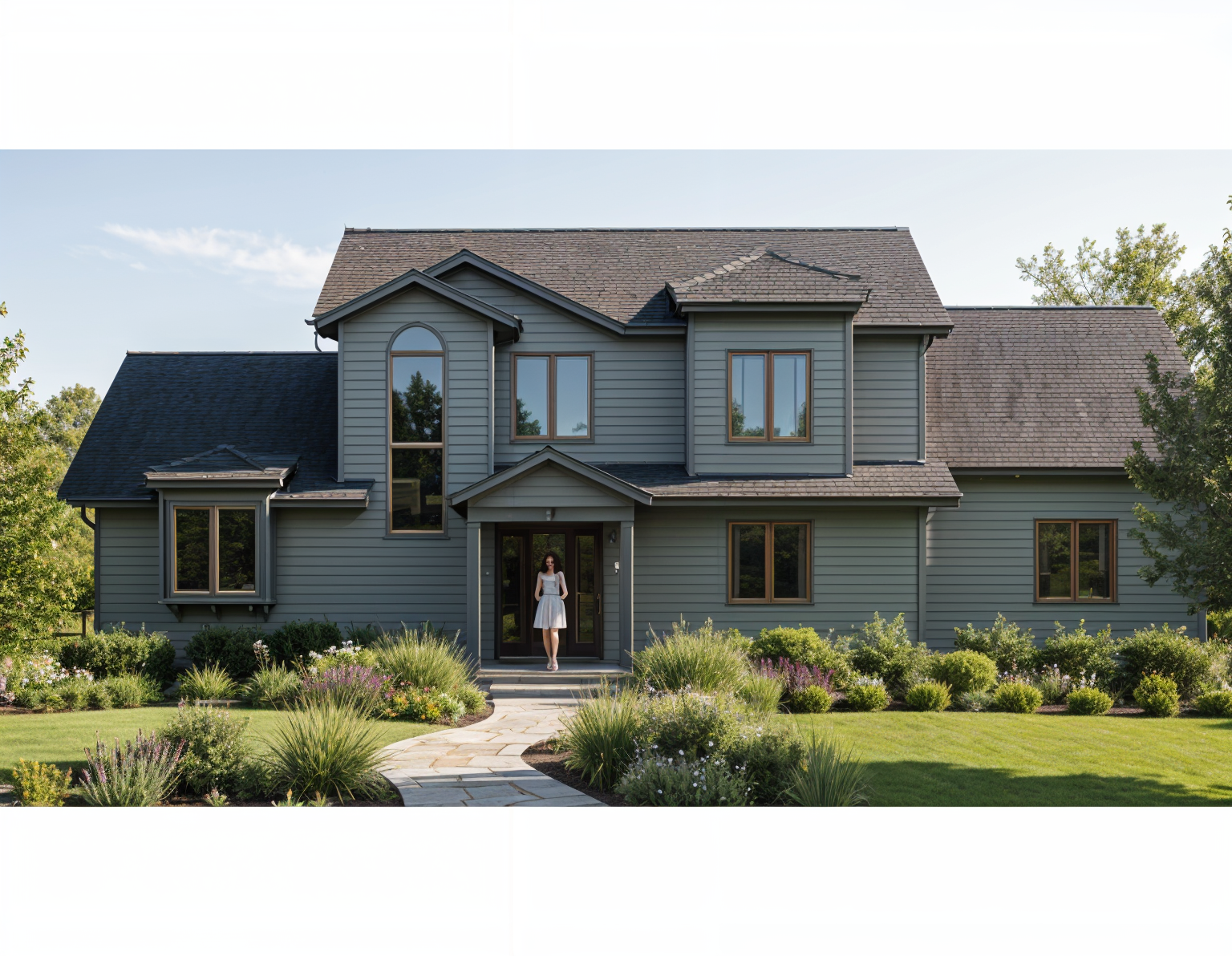 modernist exterior shot on a steep wooded hill tall trees surrounding house shou sugi ban architecture made from red brick remove curtains