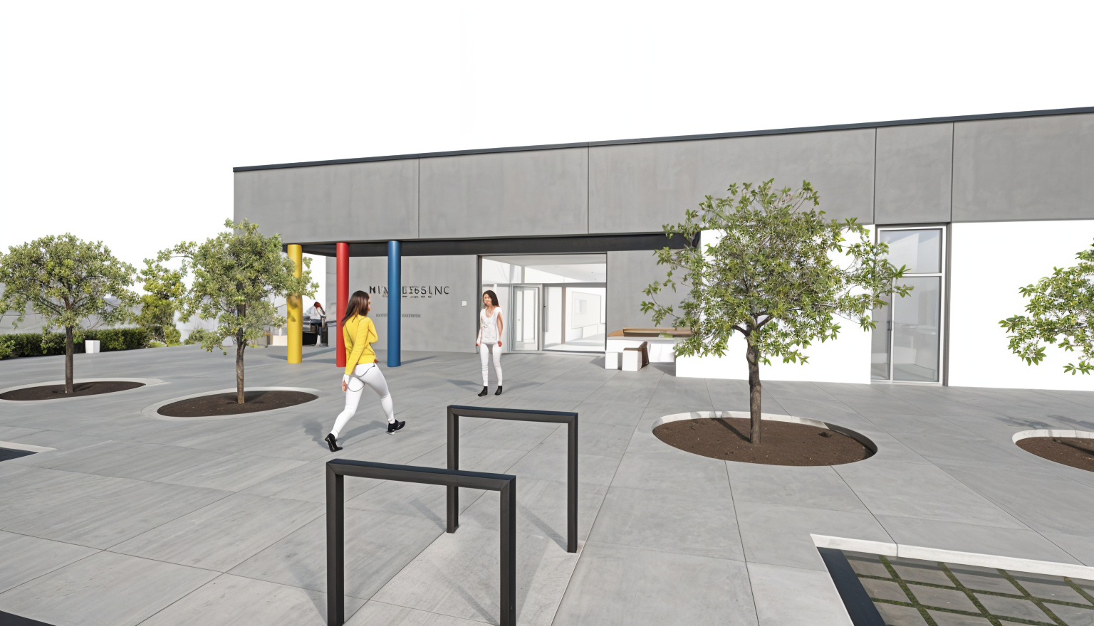 exterior shot white and graphite facade clear sky architecture
