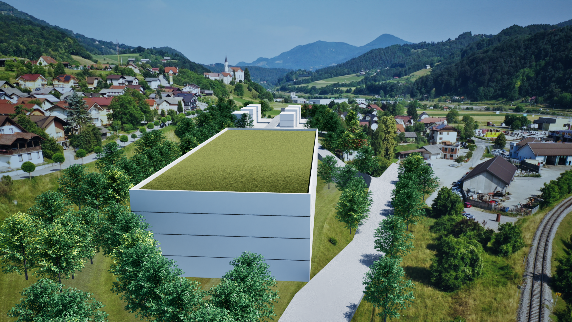 add details to building 4 storey industrial building modern look add some windows big industrial door at the bottom add cars and trucks on the road