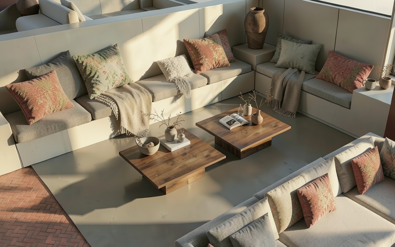 render mid century modern interior elevation