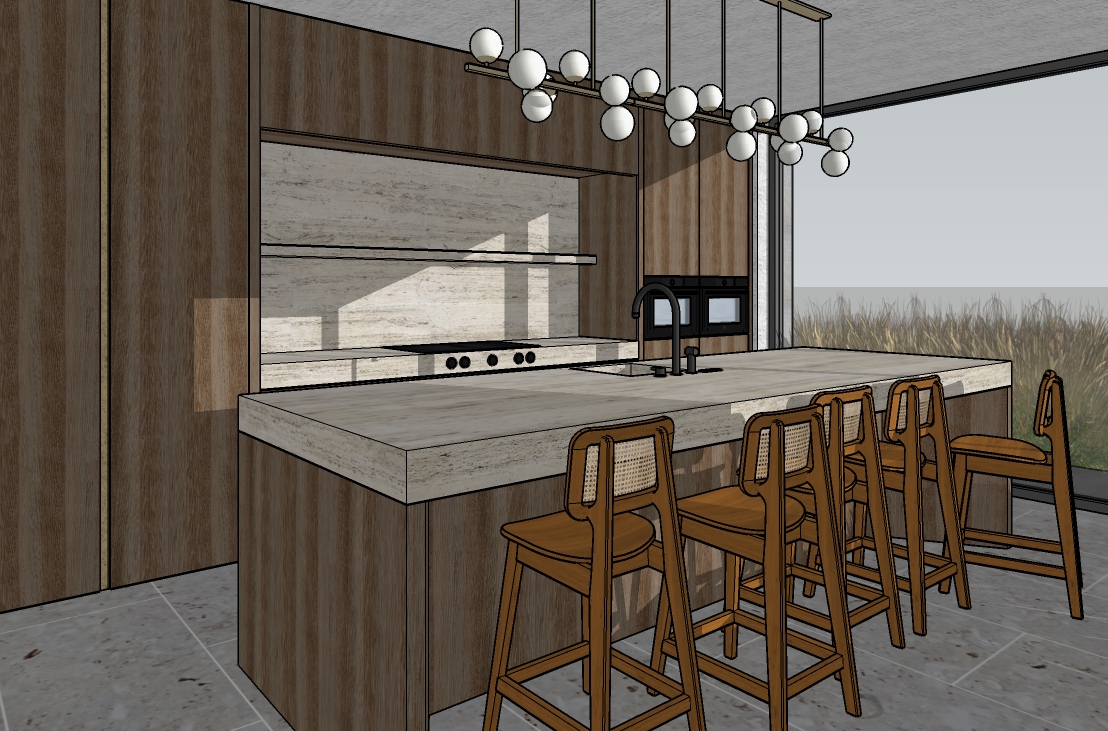 add lighting wood is dark oak make it very photorealistic darker wood and lighter ceiling please put trees in the background please