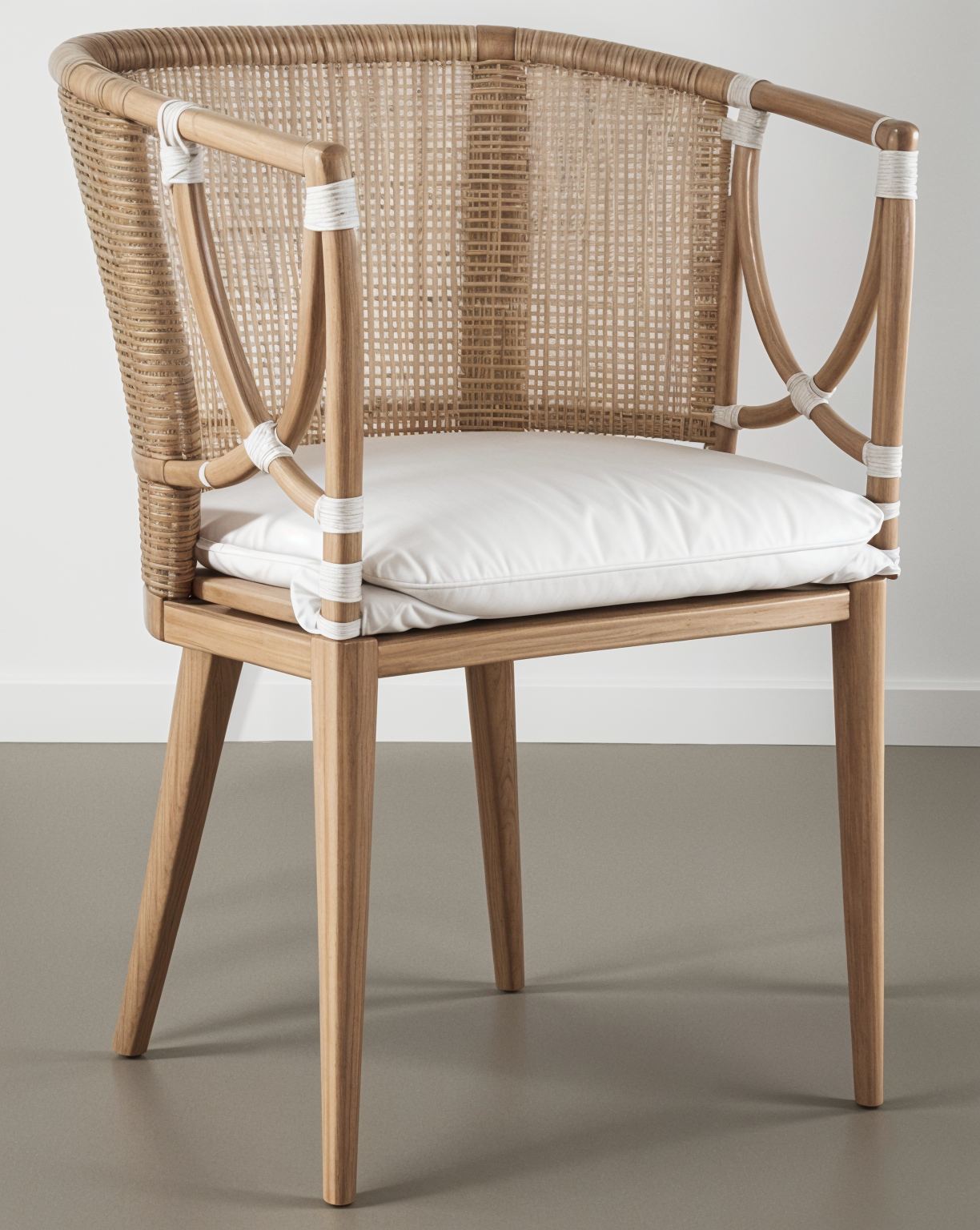 modernist perspective shot weaving inspired back chair wooden legs finish upholstered seat and back architecture