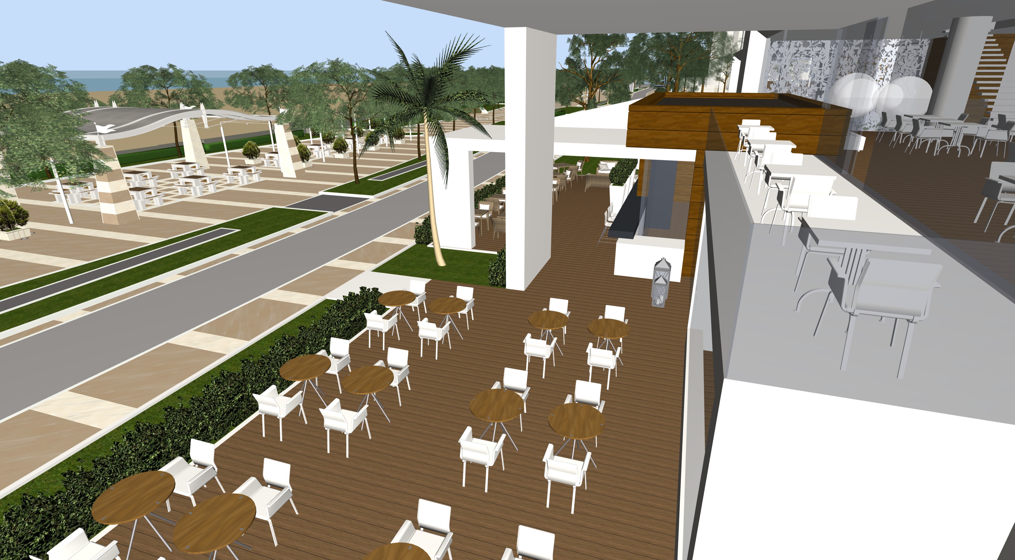 a new bar overlooking the seafront promenade the walls are clean white