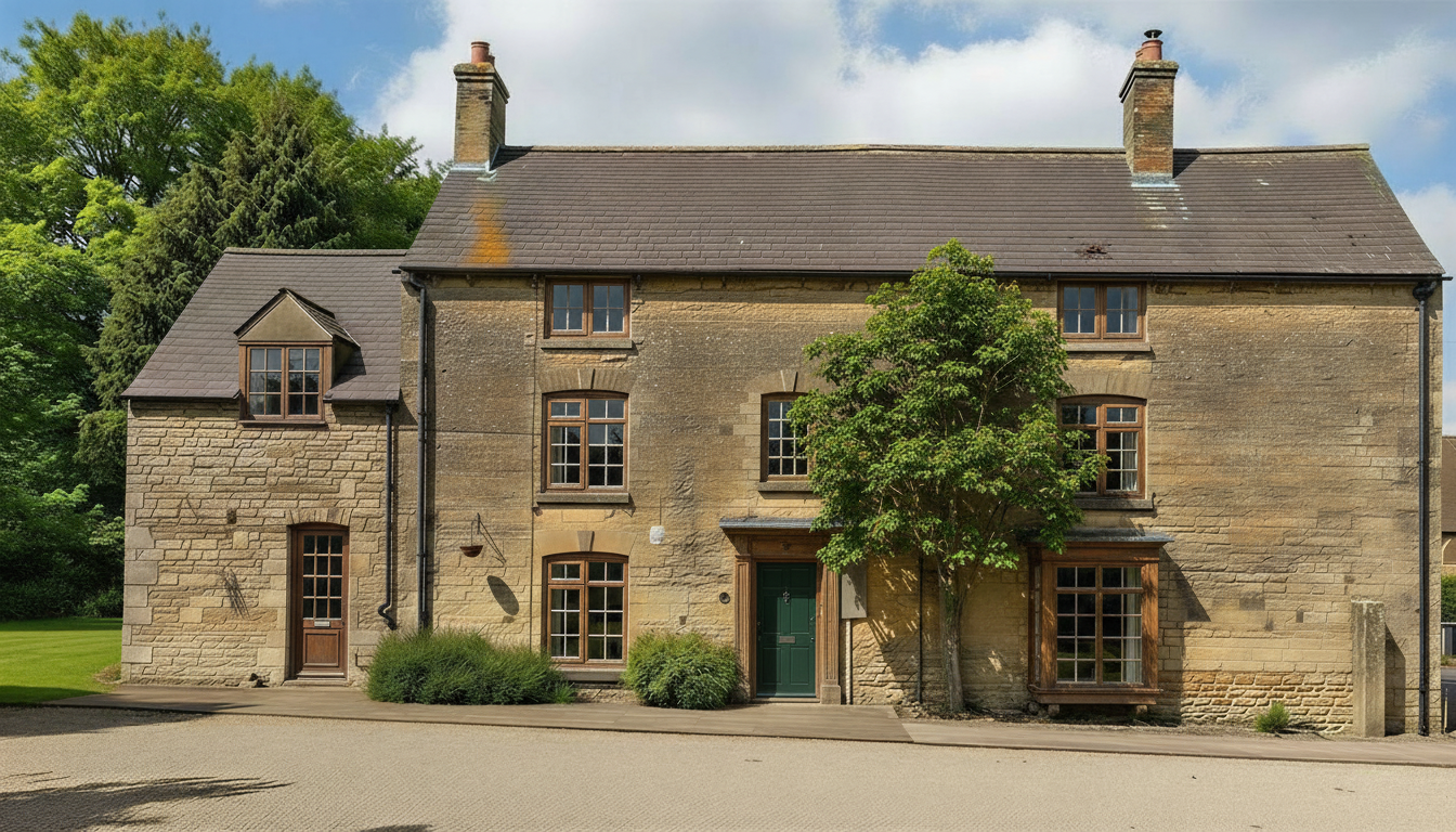 exterior shot change the bay window design keeping everything else exactly the same as the source image keeping window colours the same