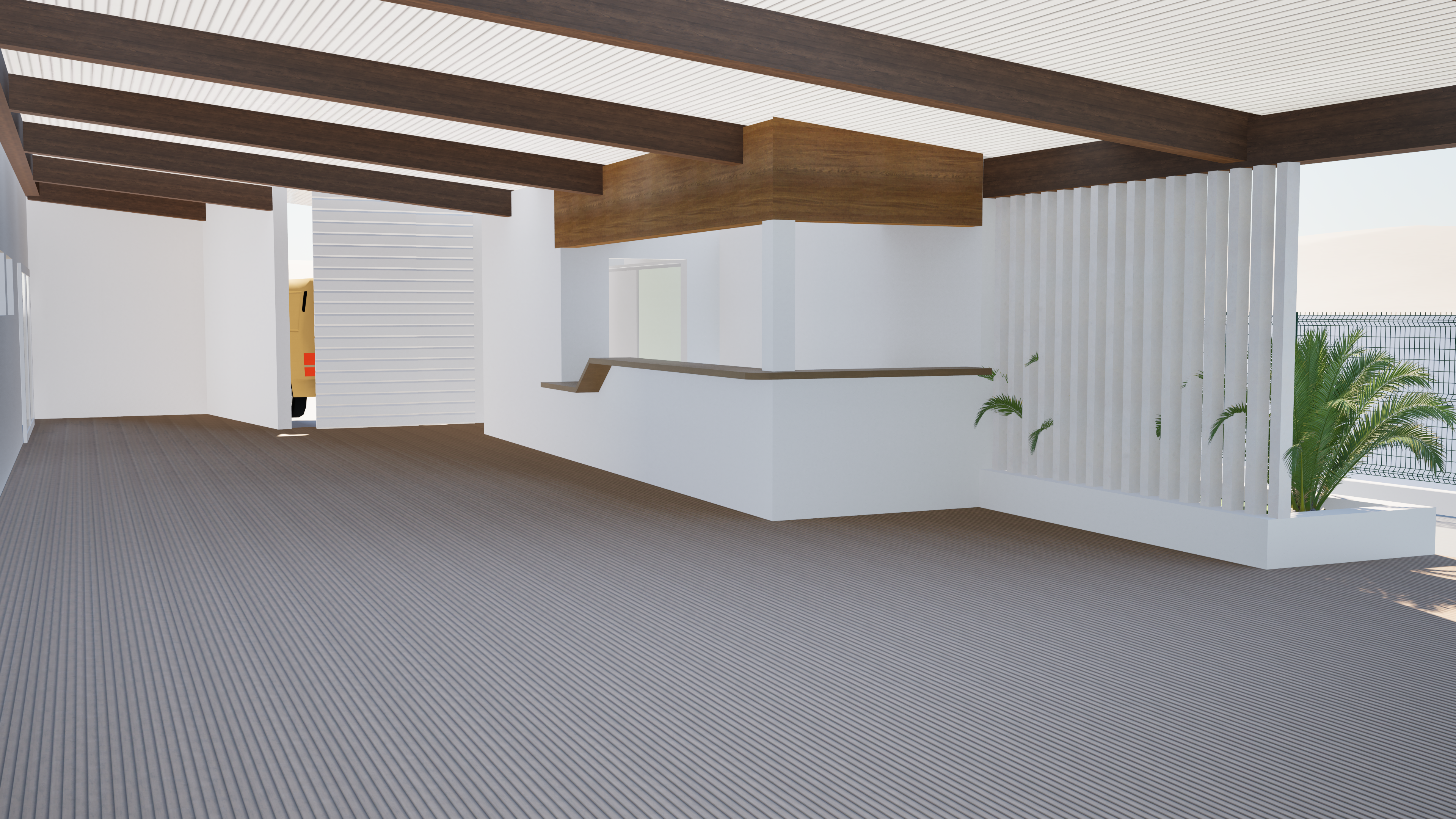 autour du b timent une v g tation luxuriante tropical rajouter des personnages black qui discutent et aussi quelqun derriere le bar une ambiance comme en meeting