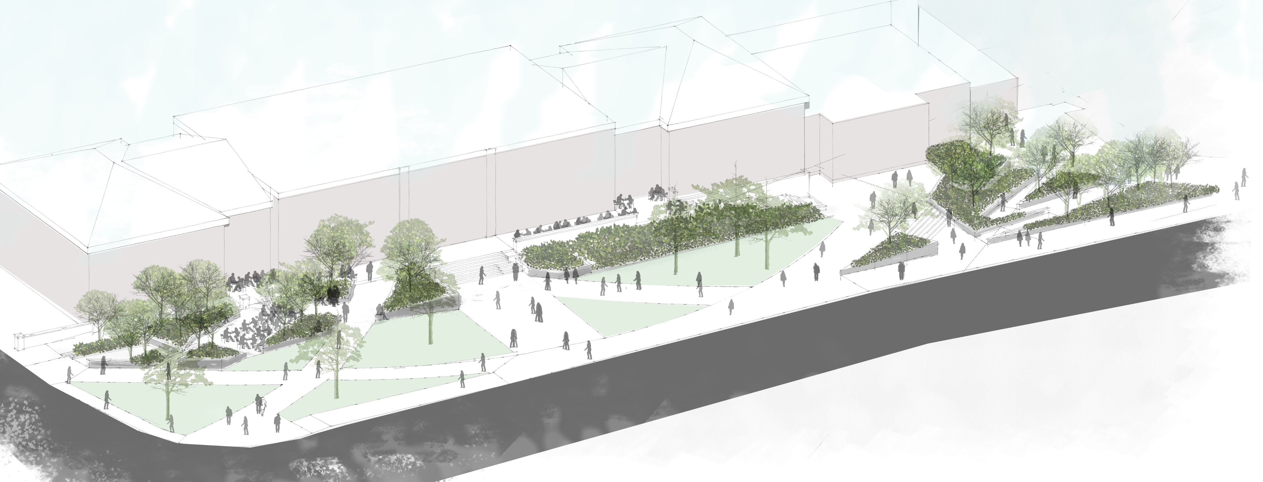 turn this sketch model view into professional rendering cgi fantastical and ethereal the building is stamp student union on university of maryland campus