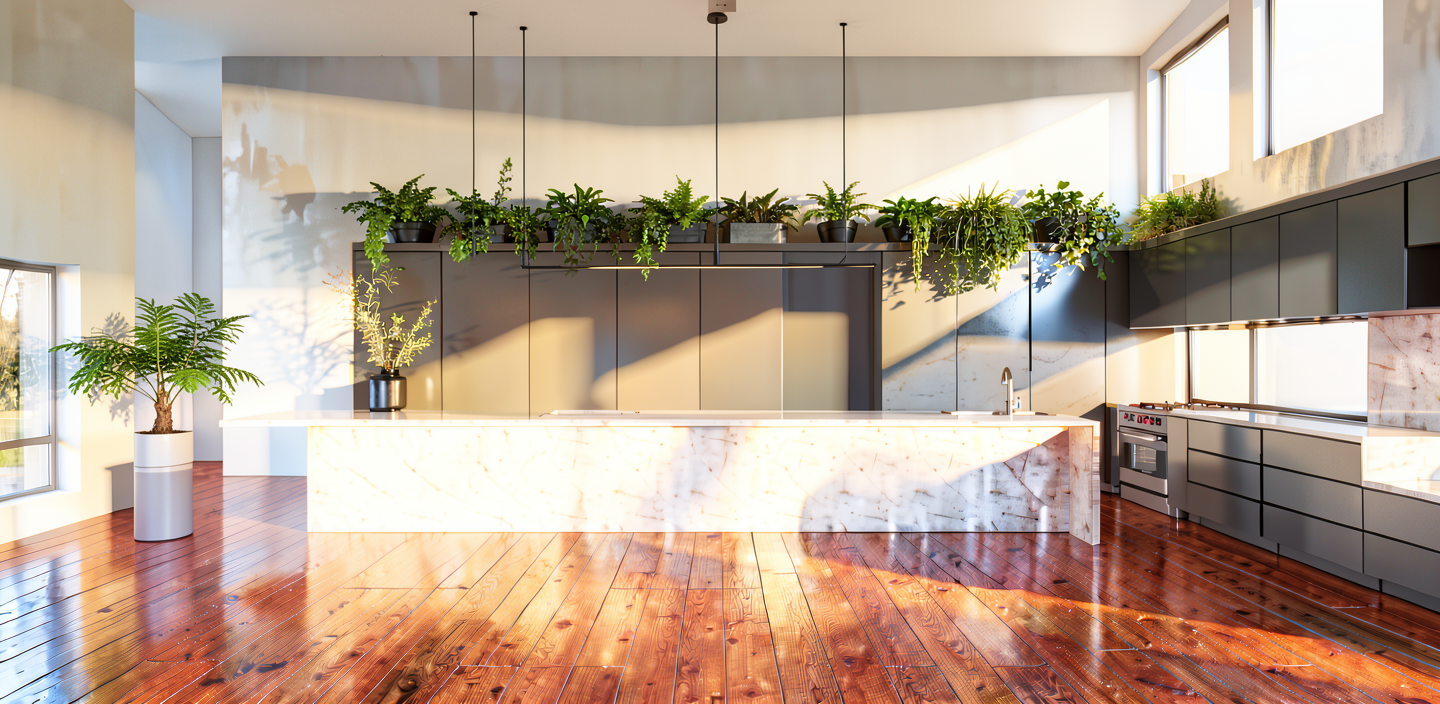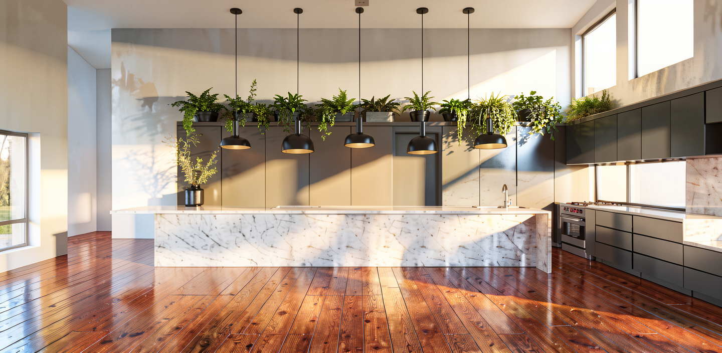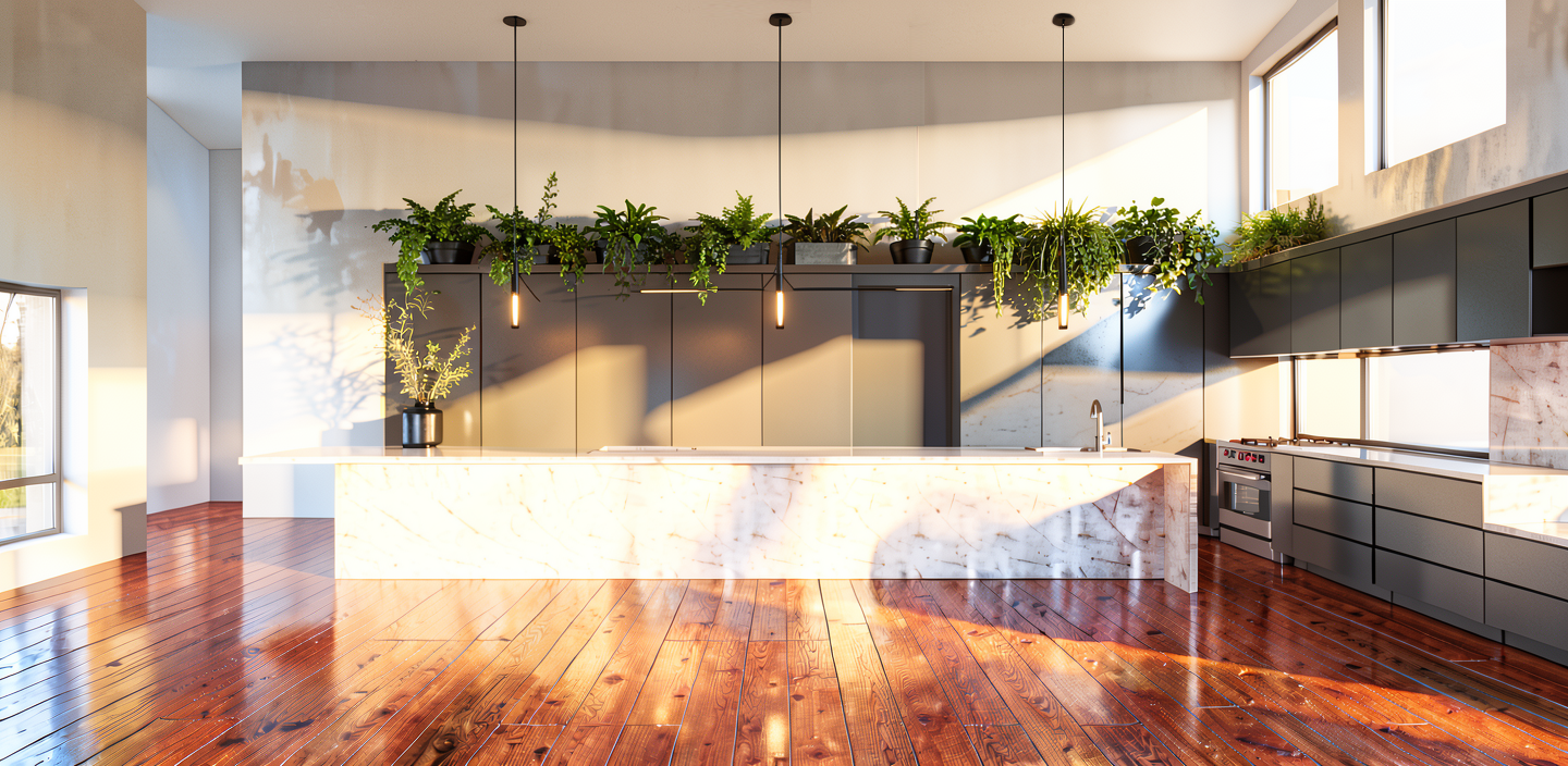 add in modern bar stools to the island bench ensure they are up the left hand side