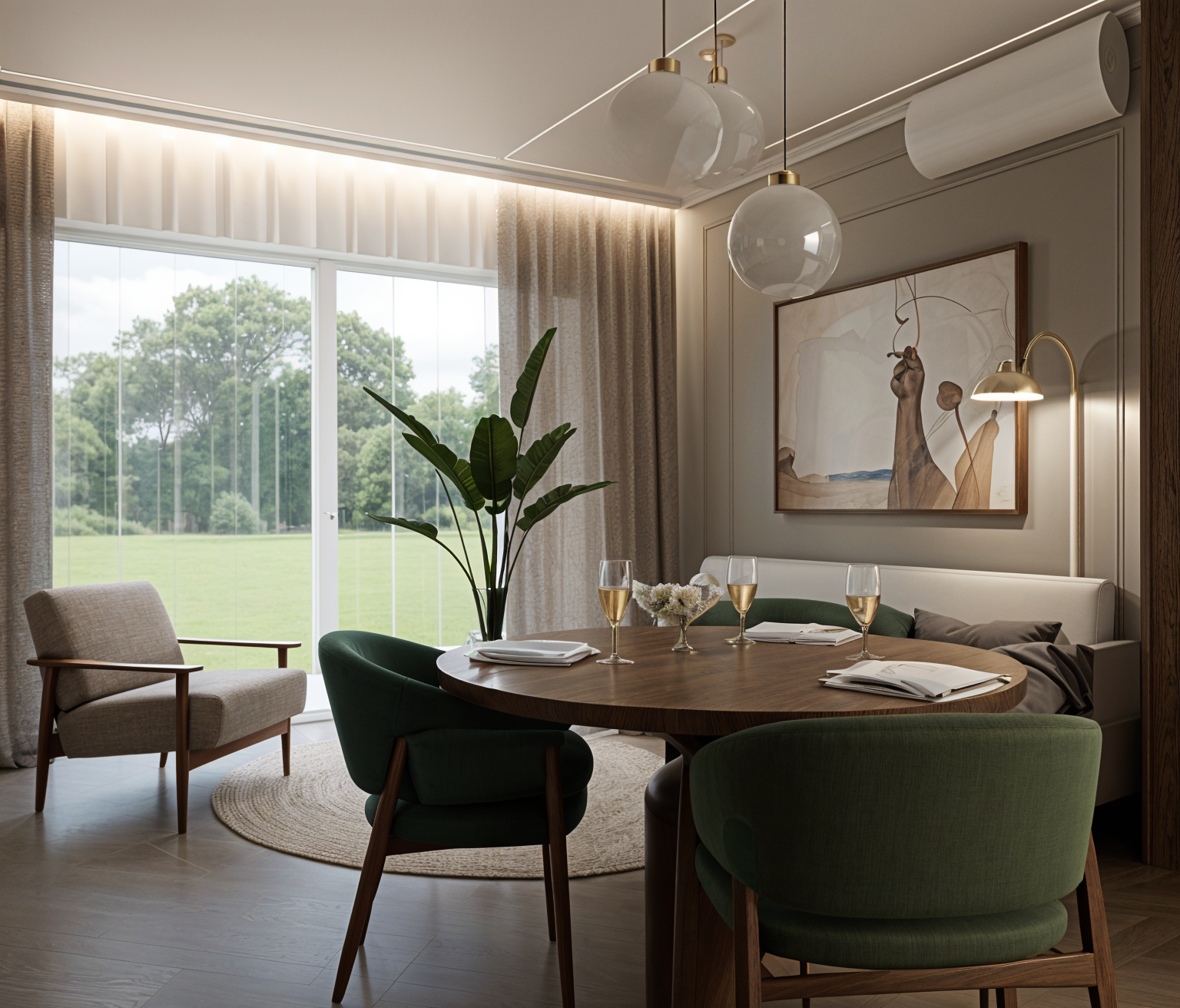 improve this picture to realistic photo don t change lamps and painting witch is on the wall