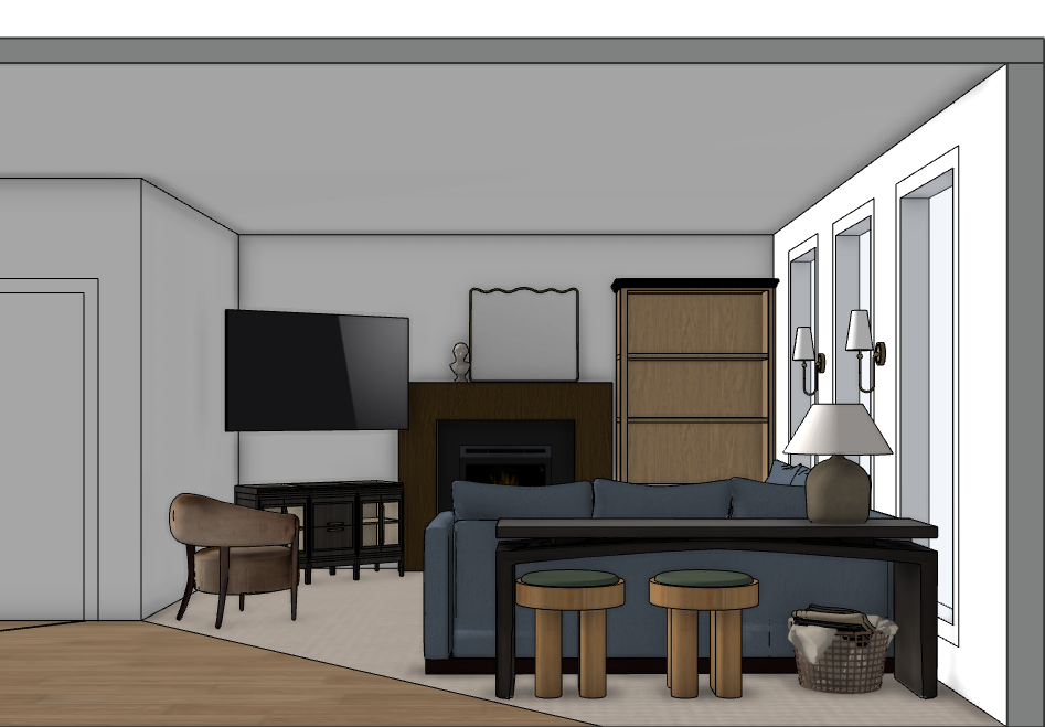 use the model as the room maintain the differences between the furniture wood tones as shown create a photorealistic rendering of the space