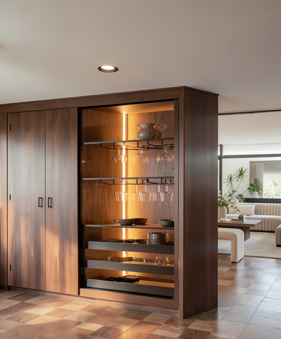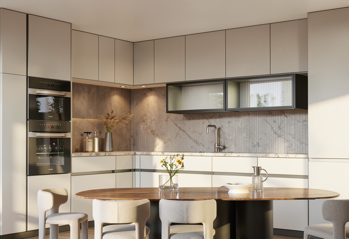 a luxurious handcrafted mosaic wall artwork with a symmetrical architectural composition featuring layered arches circular motifs terrazzo textures and iridescent glass tiles the center showcases two mirrored abstract architectural silhouettes in dark stone connected by sweeping curved forms set against a pale blue micro tile background