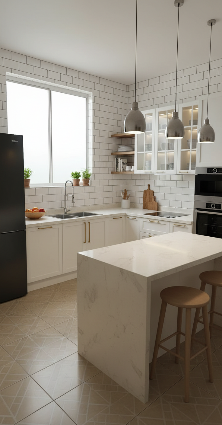 place a fulll height floor to ceiling cabinet in the left corner where the refrigerator currently is respect the cabinets besides and just change de refrigerator
