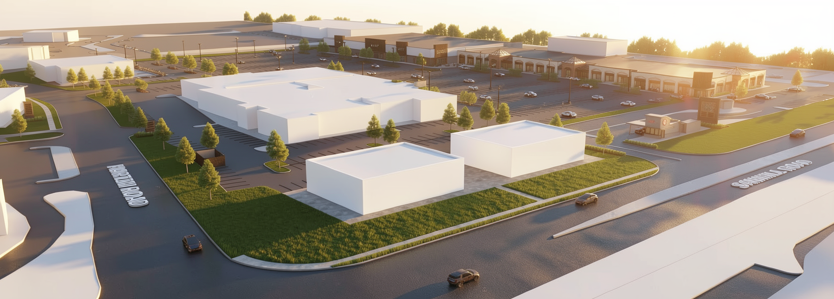 modern daycare facility in a residential community asphalt parking lot with houses in the background black horizontal smartboard siding light tan trim light brown shingle roof