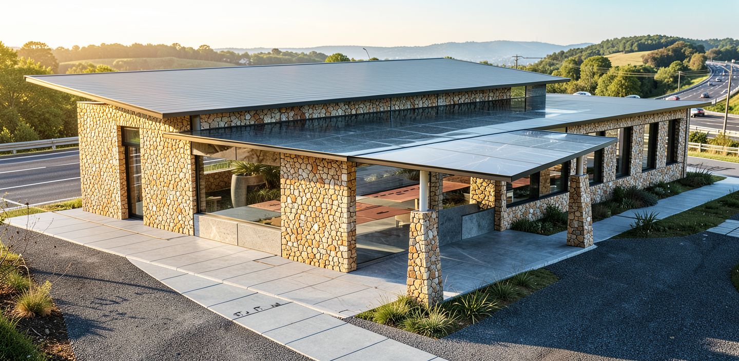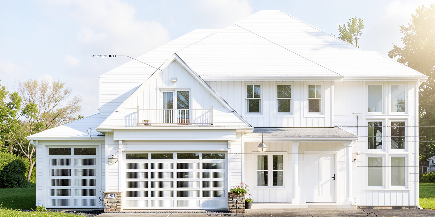 create a highly realistic yet artistic architectural exterior image based on the provided house preserve the exact structure proportions rooflines materials and colour palette of the original model do not redesign or exaggerate any architectural elements the integrity of the building must remain unchanged set the scene in early autumn with a soft warm atmosphere use golden hour light with gentle falloff warm highlights and cooler balanced shadows to create depth without overpowering the scene avoid harsh contrast or stylized hdr effects surround the home with early fall foliage a restrained mix of greens muted golds soft ochres and subtle amber tones trees and landscaping should feel natural and slightly imperfect with hints of seasonal transition rather than peak autumn colour introduce an artistic softness through light and atmosphere subtle haze gentle bloom in highlights and natural shadow gradients while keeping materials sharp and believable stone wood and shingles should retain realistic texture colour accuracy and scale windows should reflect the surrounding trees and sky in a natural painterly way with controlled reflections that add mood but do not distract composition should feel intentional and calm like a fine art architectural photograph rather than a marketing render use an eye level camera natural framing and a quiet foreground that draws the viewer toward the entry apply restrained cinematic colour grading warm neutrals softened greens slightly lifted shadows and gentle contrast no oversaturation no dramatic colour shifts no artificial sharpening the final image should feel timeless warm and emotionally grounded a photograph that balances realism with quiet artistry