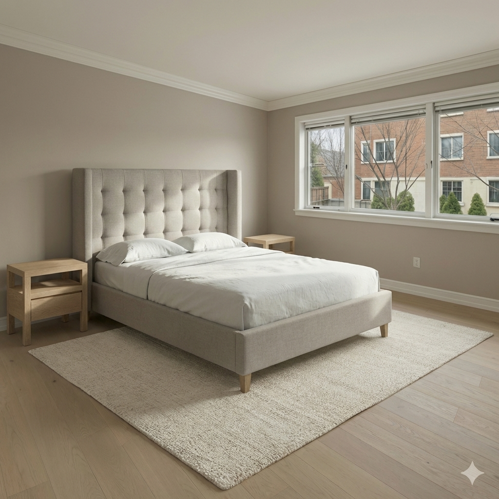 i want to decorate this space add lamps to both nightstands add white bedding with accent throw pillows and throw blanket draped at the end of the bed add plants and decor to the nightstands as well do not change or reinterpret anything else in this space