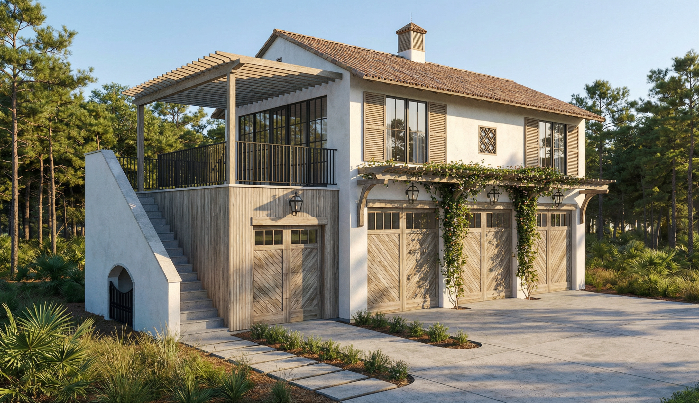 keep everything the same do not change layout or material only all a ledge on the top of countertop backsplash and show black window grill to the round window to the right render thing into a photo realistic rendering