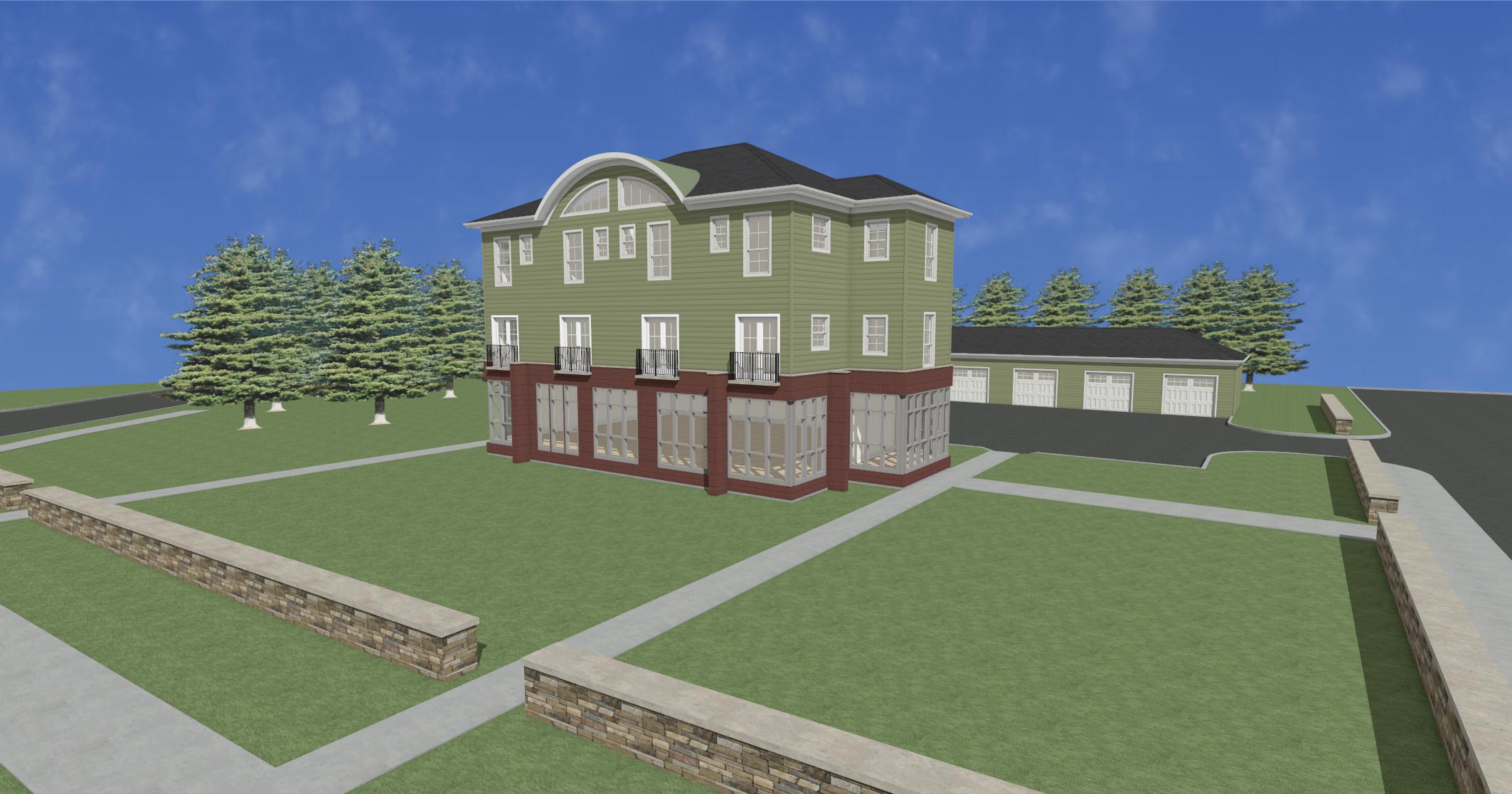 background to be mixture of medium sized pine and leafy trees keep the sidewalk and street on the right side no plants in the front or side yard don t edit the front lawn