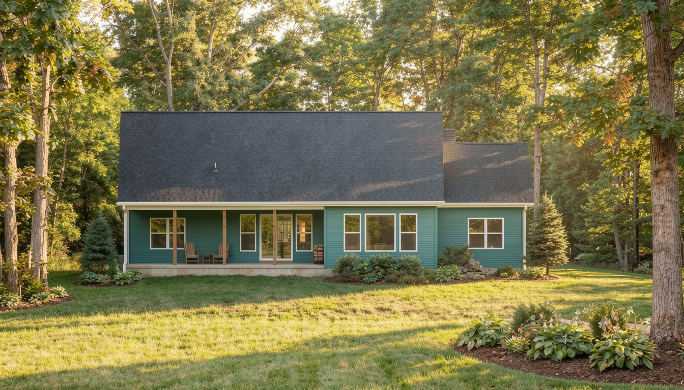 render this japandi kitchen floor plan do not change the design dimension and materials in the model add some lights on wall sconce and pendant only and make the finishes realistic