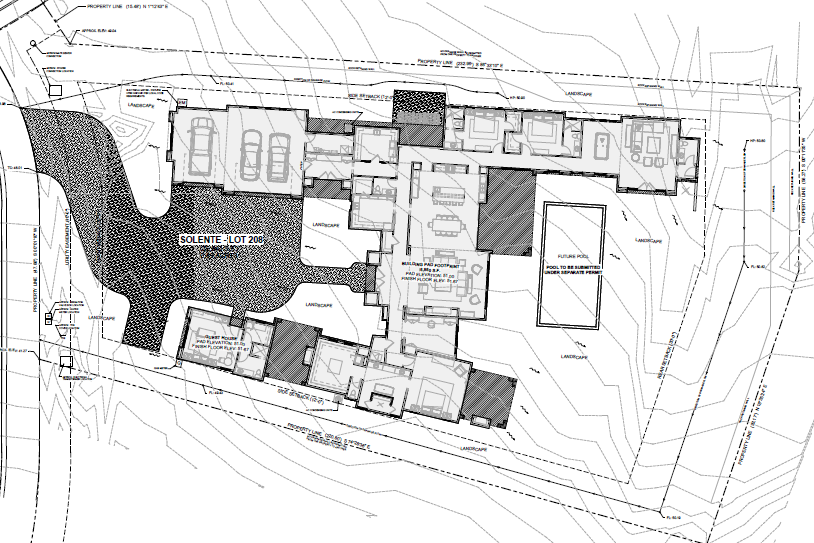 convert this floor plan into a realistic isometric 3d view of a full house show the space from an elevated angle with furniture walls and details visible sketch the floorplan and a landscape plan for this home based on this siteplan use the same furniture as shows on the plan do not change the orientation of the floorplan