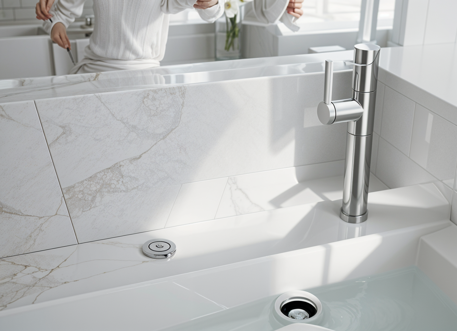 modernist exterior shot render a modern architectural building in a serene landscape the building has a minimalist design with large sleek glass windows and dark weathered wood panels use deep gray and charcoal tones for the exterior the landscape is lush with soft green grass and distant blurry trees under a gentle golden sunset sky casting a warm glow over the structure the atmosphere is tranquil and inviting with a harmonious blend of nature and modern design architecture