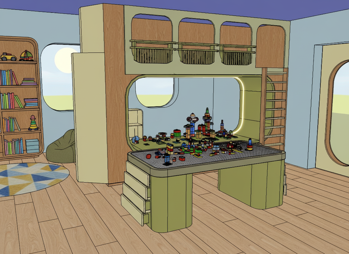 lego table wood flor led lights