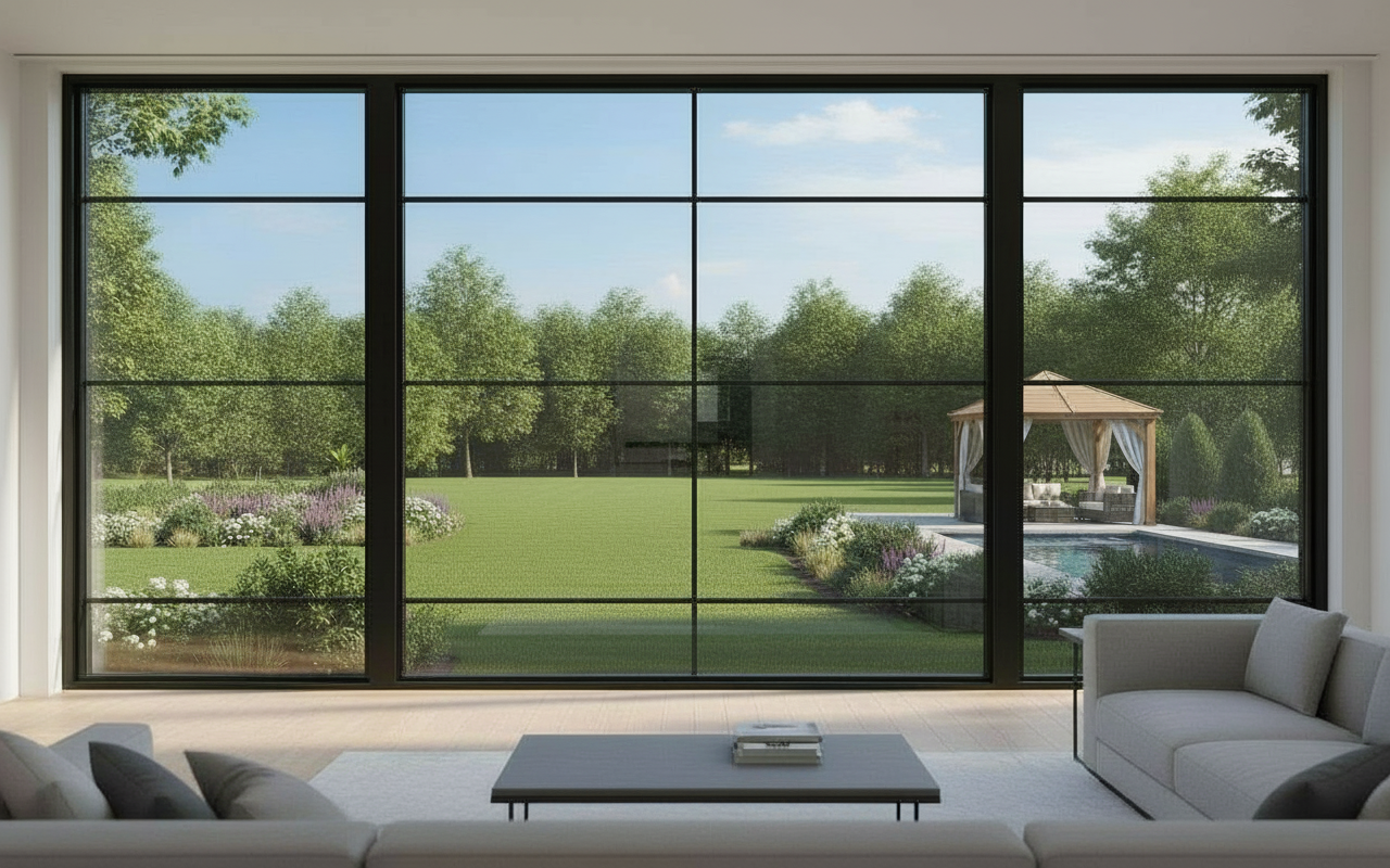move gazebo to the left of the pool immediately next to the pool make the pool bigger keep the pool on the right side of the window opening like it already is