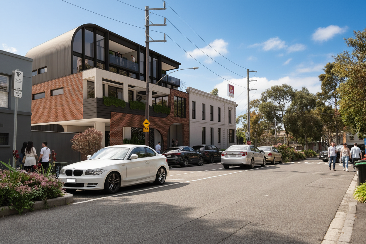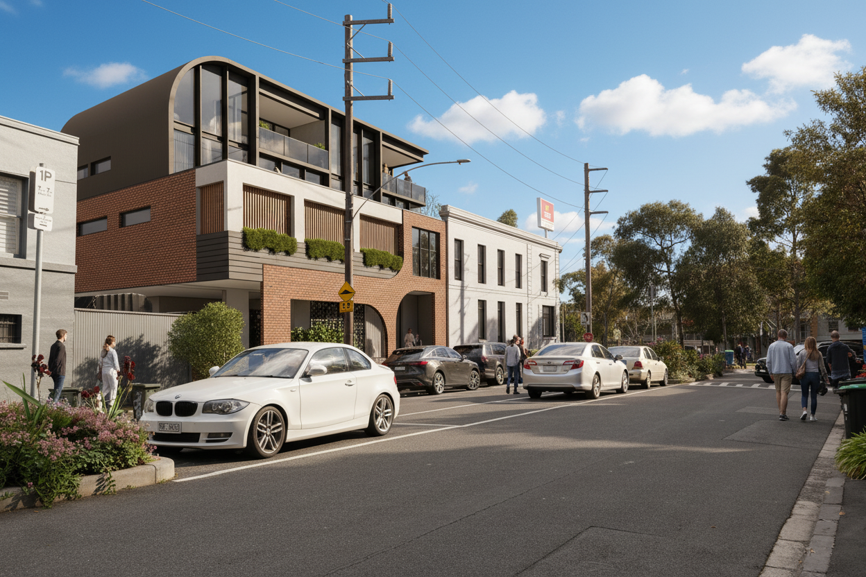 classical exterior shot in an australian rural setting at sunset with a lush green garden external colour pallette of white and soft grey architecture