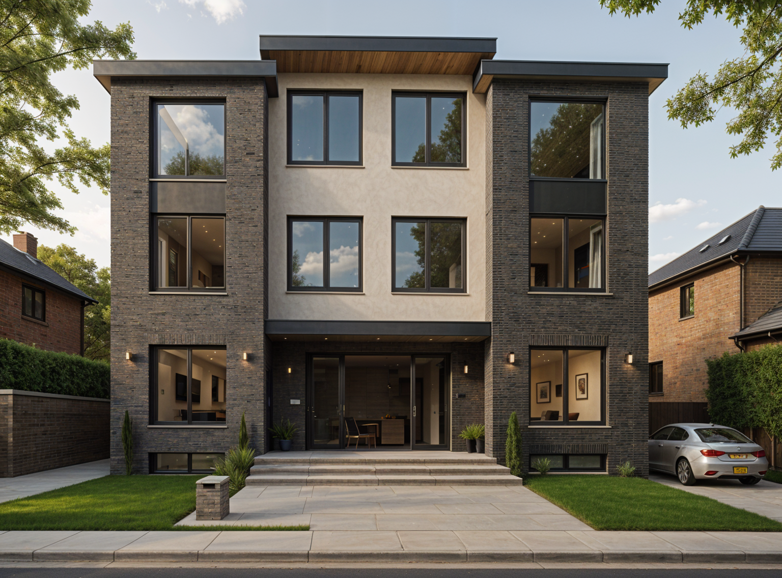 black posts and deck black roof white windows no window trim