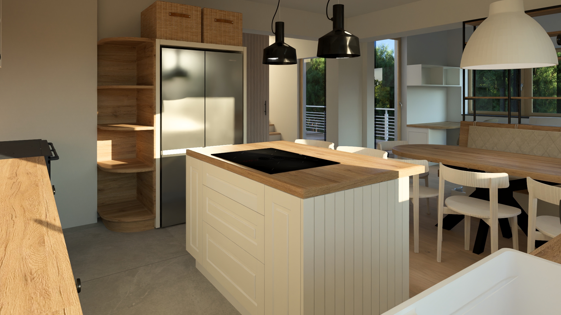f ge nat rliches licht ein und lass es realistisch aussehen f ge auf den esstisch ein paar tischsets ein und etwas dekoration in der k che behalte alle farben und materialien bei