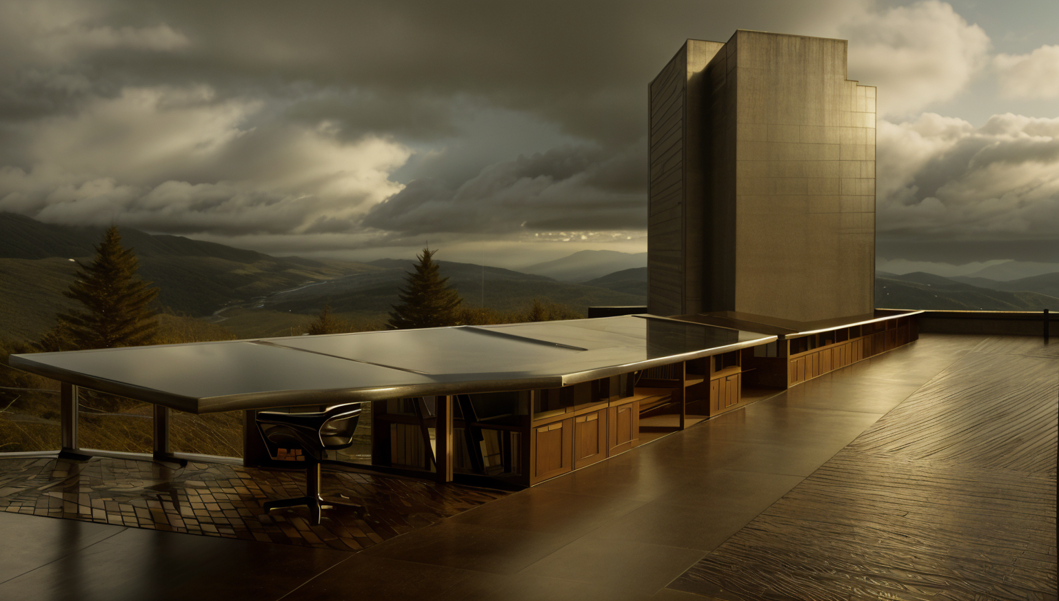 render a modern architectural building with a sleek design featuring a combination of glass and light wood elements highlight the transparent glass panels and support beams in soft natural wood tones for a minimalist aesthetic set against a clear blue sky and surrounded by lush green grass and scattered trees with vibrant green foliage create a bright and inviting atmosphere with soft sunlight casting gentle shadows to give a sense of openness and tranquility architecture