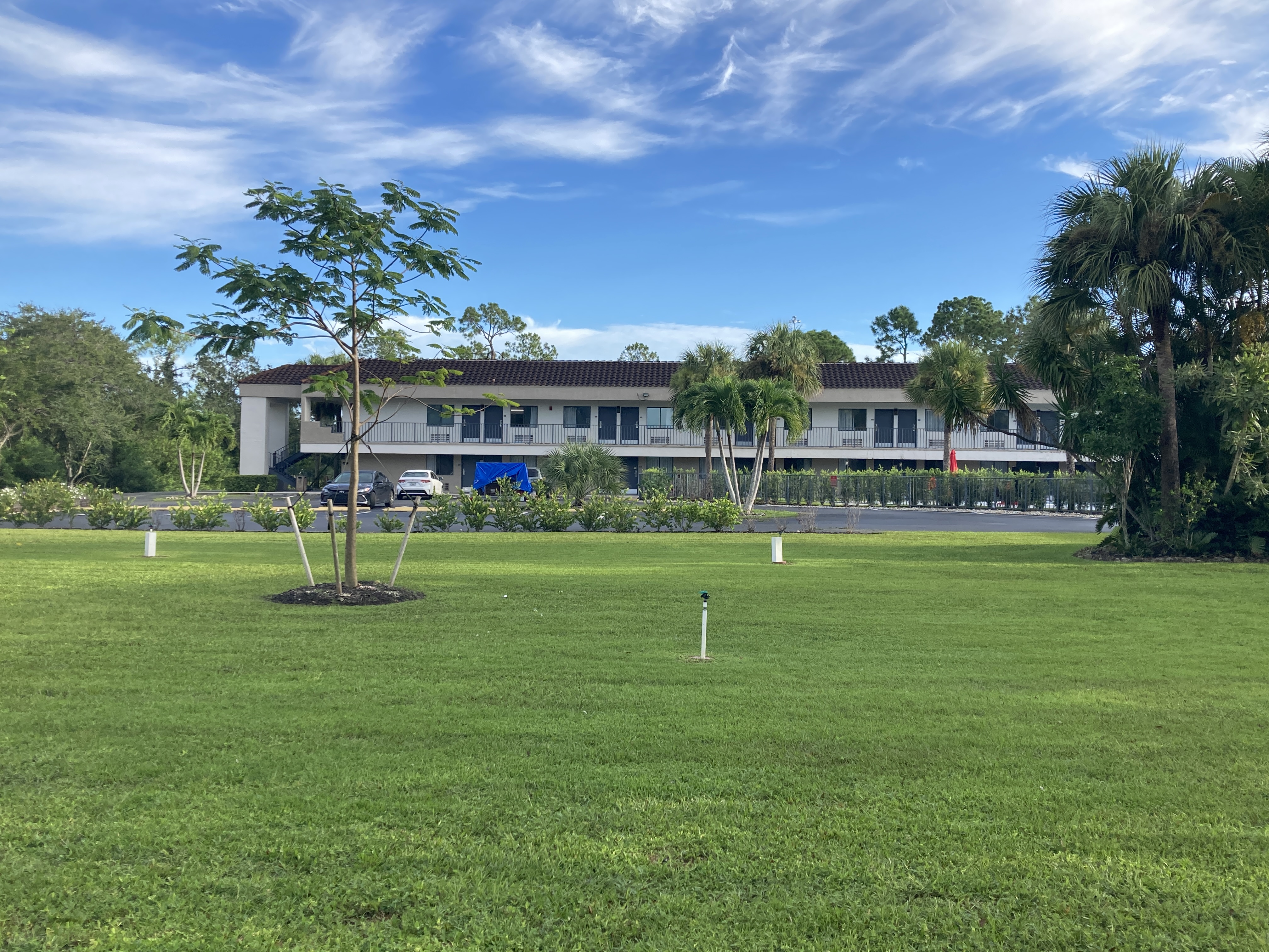 update the building in the background to look newly renovated don t change anything else architecture